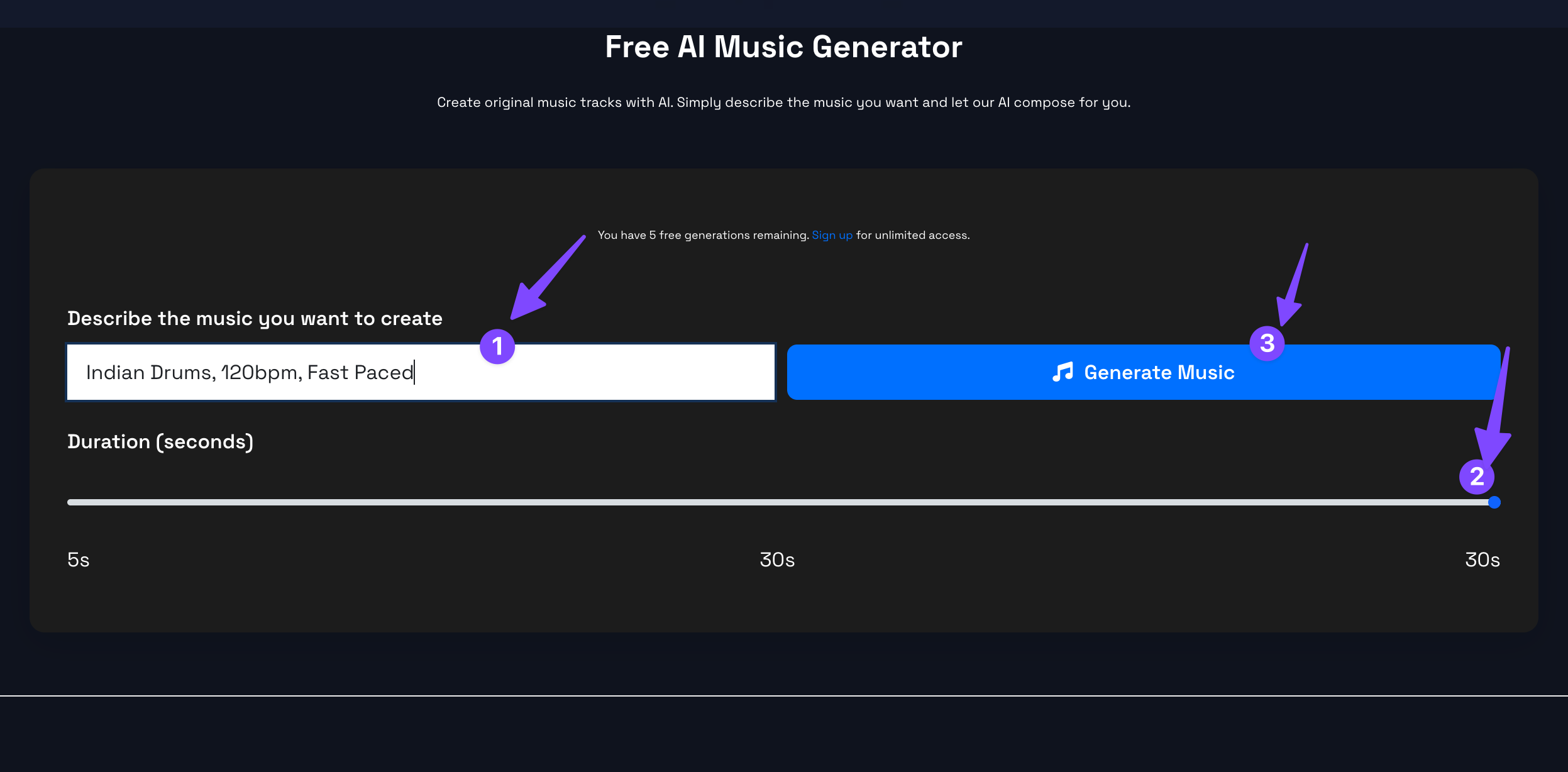 - Text to Music: You just need to input the text prompt what you want to generate and watch the magic happen