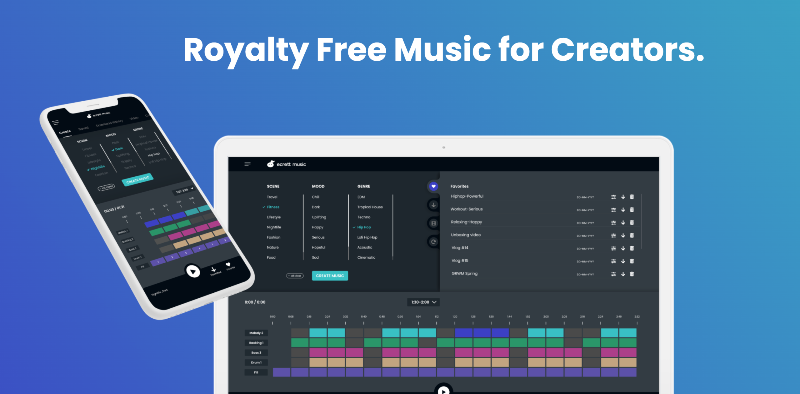 Ecrett AI music generator is free to use and you can download preview music for free, but if you want an unlimited version and unlock unlimited possibilities, then you need to get individual plan that starts from $4.99/month.