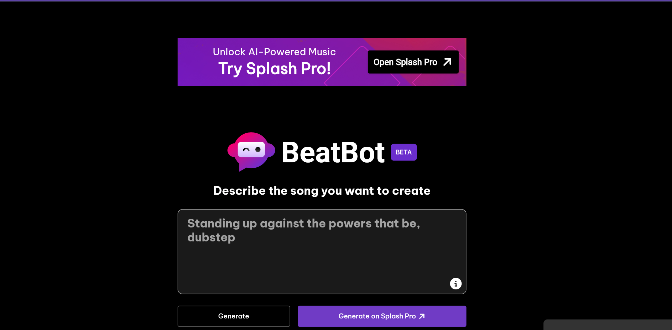 Beatbot by Splash Pro is an IOS-based app that uses AI to generate songs from text by utilizing famous chord progressions and allowing users to create new melodies in minutes.