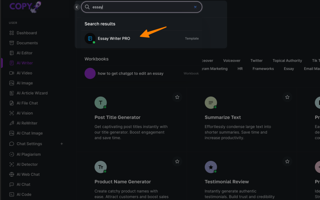 To utilize Copyrocket AI’s Essay Writer Pro features, here are step-by-step instructions to guide you through generating compelling essays: