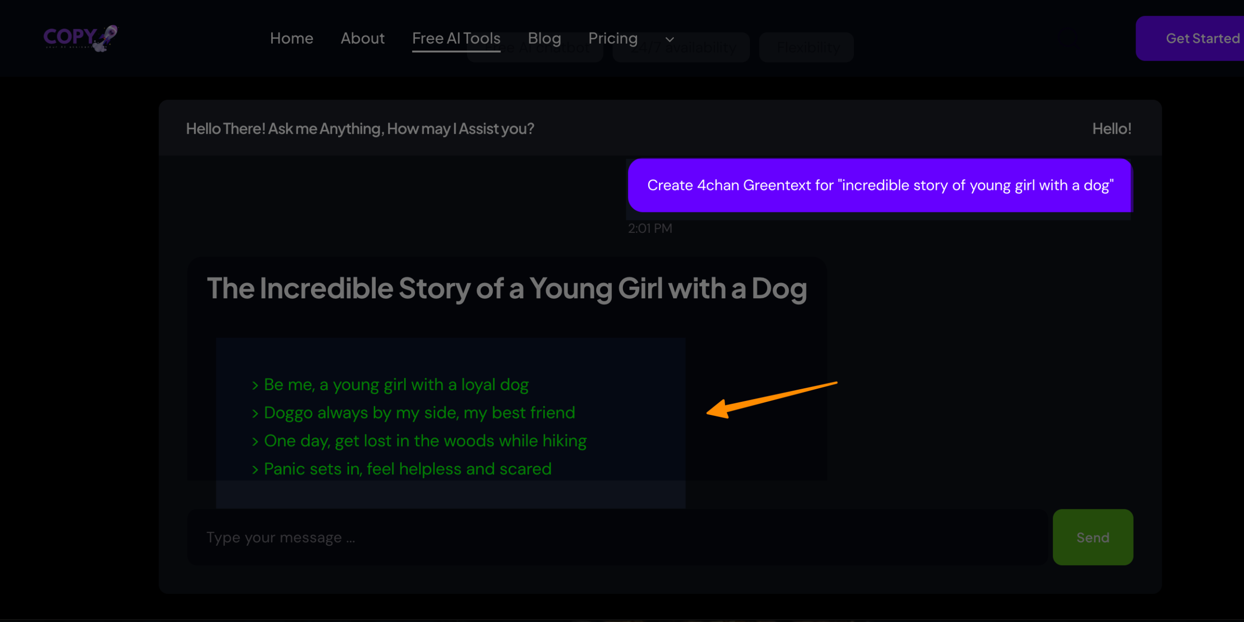 Use Copyrocket’s AI Chat Bot to generate Greentext