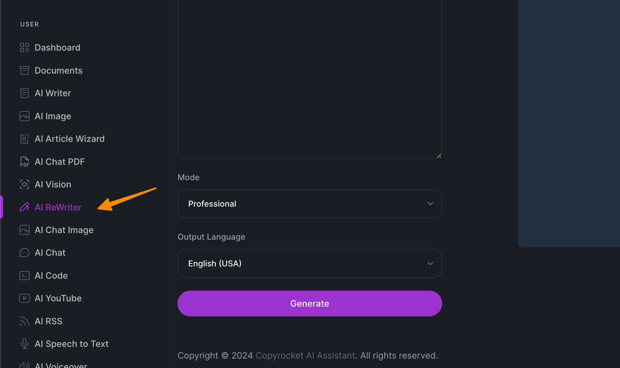 If you want more customization, you can use our AI ReWrite tool to rewrite content in just a few clicks in your own voice; all you need to do is sign up for a free account here and navigate to AI ReWrite from the left sidebar;