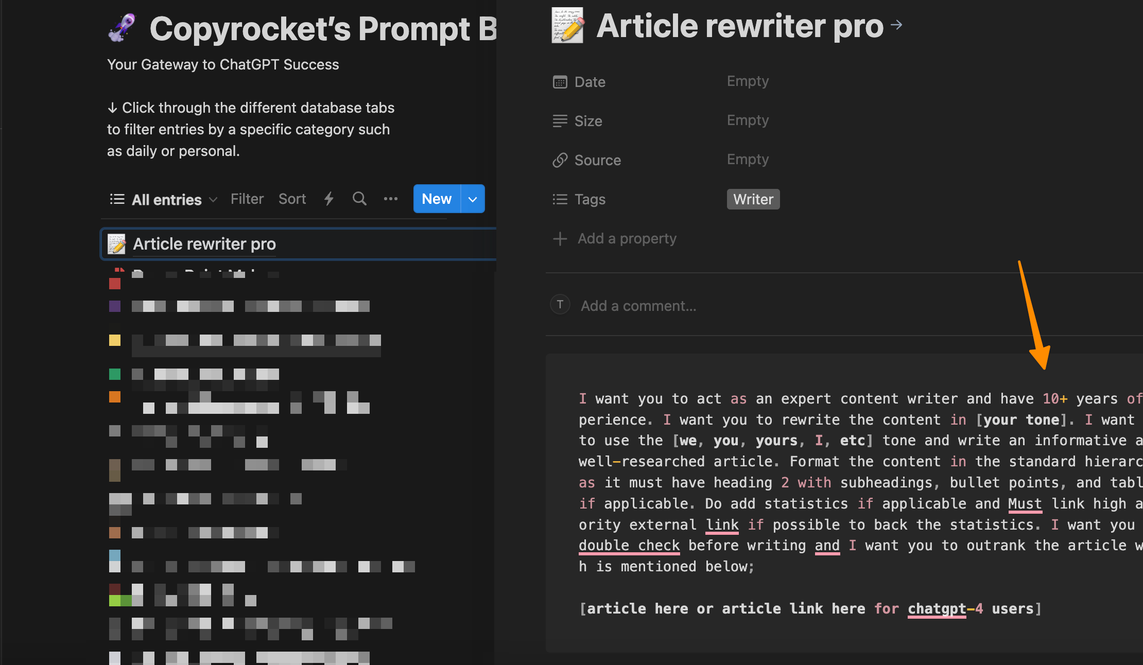 Let’s take example, first you need to login to ChatGPT here and then you can copy the following prompt from Copyrocket’s Prompt book of Article rewriter;