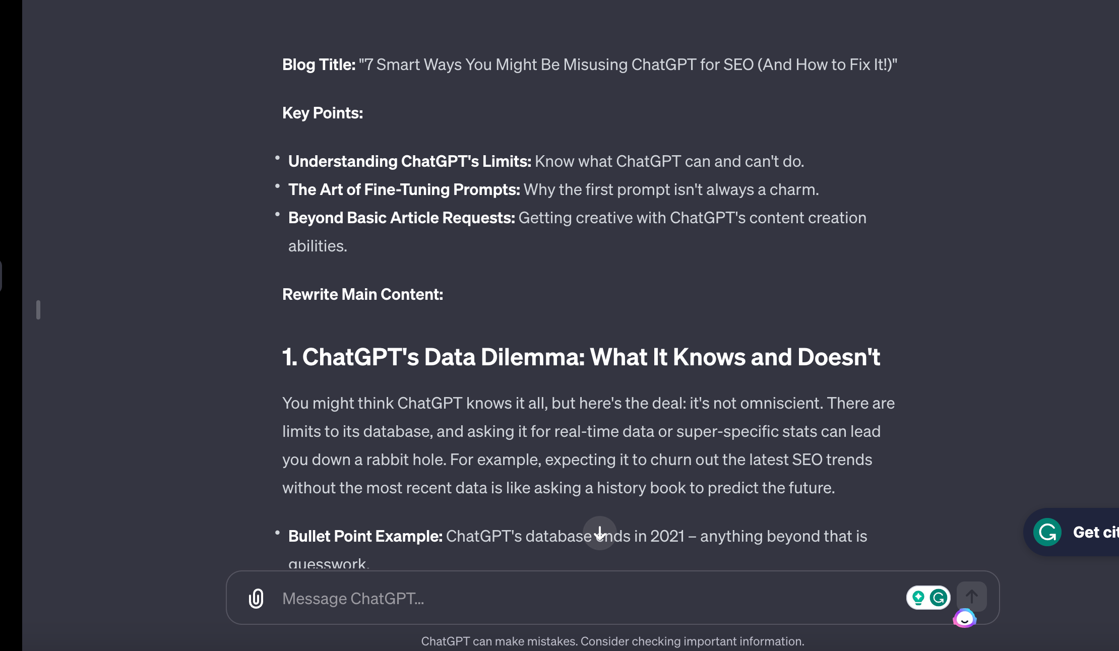 But what sets this tool apart is its unique “prompt” feature. By providing a brief sentence or phrase related to your text, ChatGPT can generate content that aligns with your desired context and tone. This makes it an excellent choice for niche writing tasks and specific target audiences.