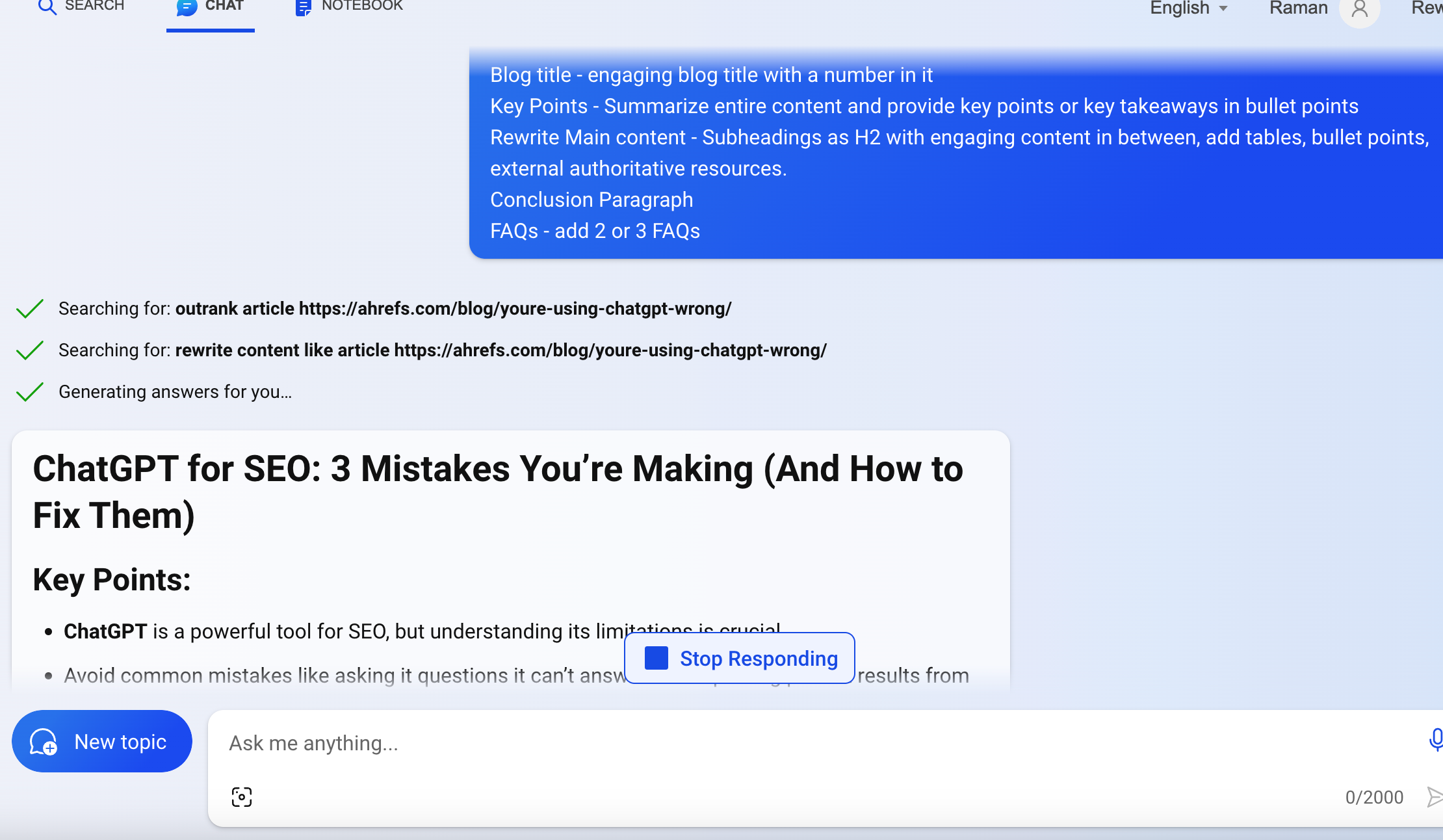 You can also write in multiple languages as you specify in the prompt itself to make it valuable content for your readers in your own language.