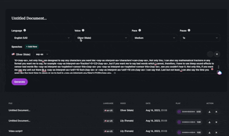 Different Speaking Styles: The tool offers a variety of speaking styles that cater to different needs and preferences. From professional and authoritative tones to casual and conversational styles, you have the flexibility to choose the perfect voice for your content.