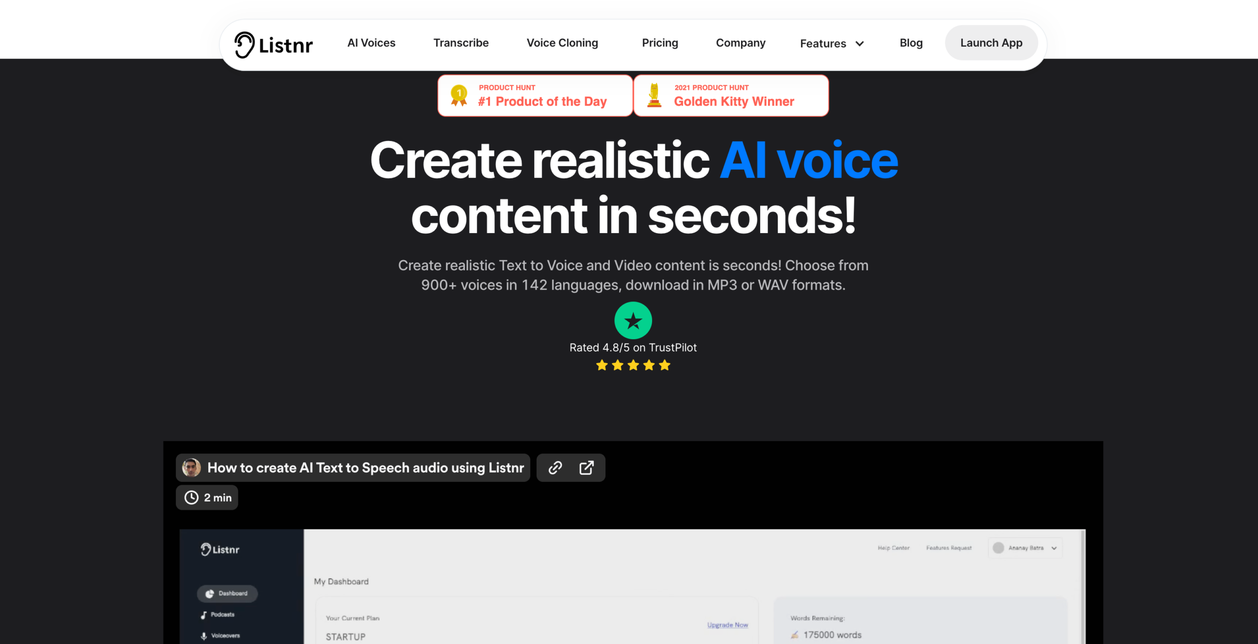 Listnr AI Text to Speech platform