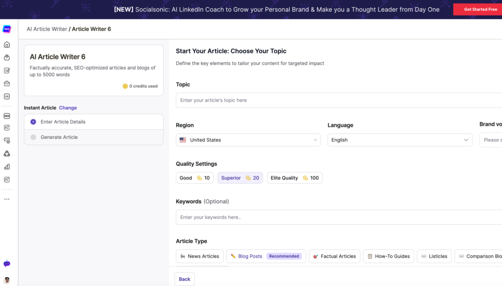 - Control Over Quality: Offers various versions of its AI Article Writer, allowing users to choose the quality level that suits their needs.