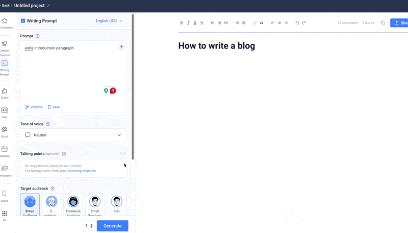 - Maximized Efficiency in Your Writing Journey: From battling writer’s block to writing captivating blog posts, the tool makes generating coherent and engaging text as simple as possible.