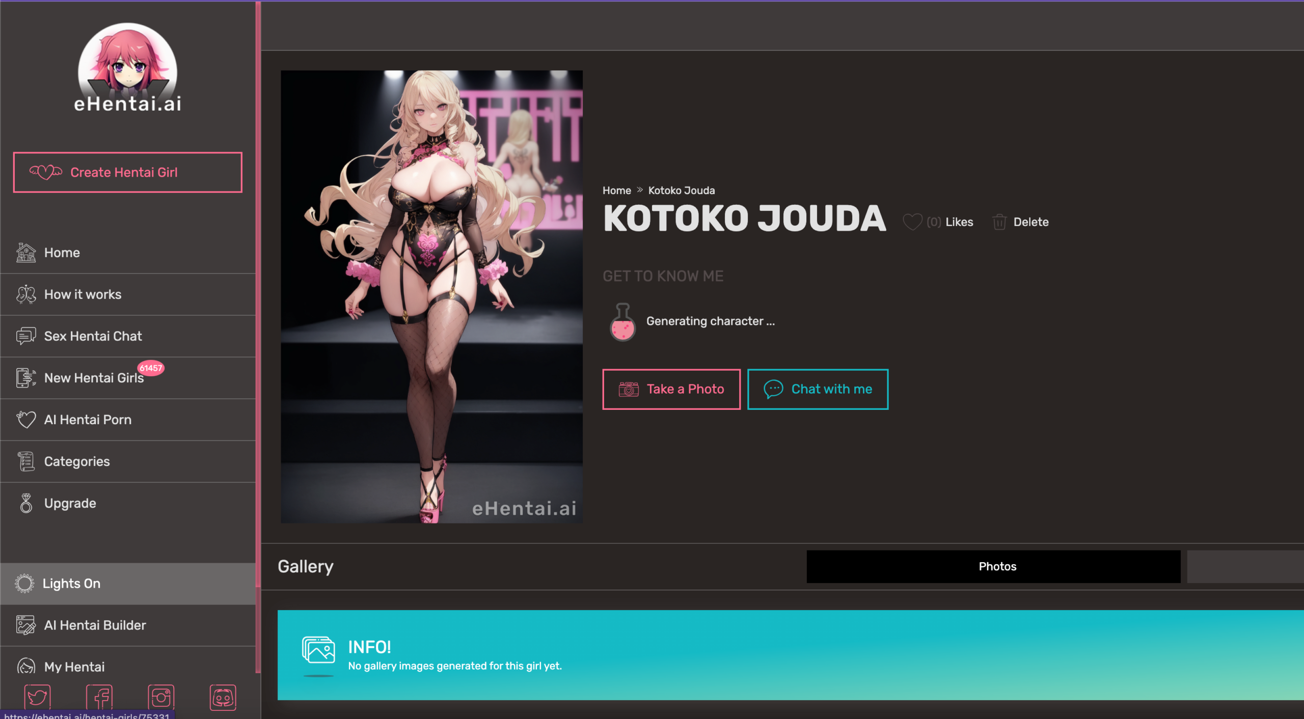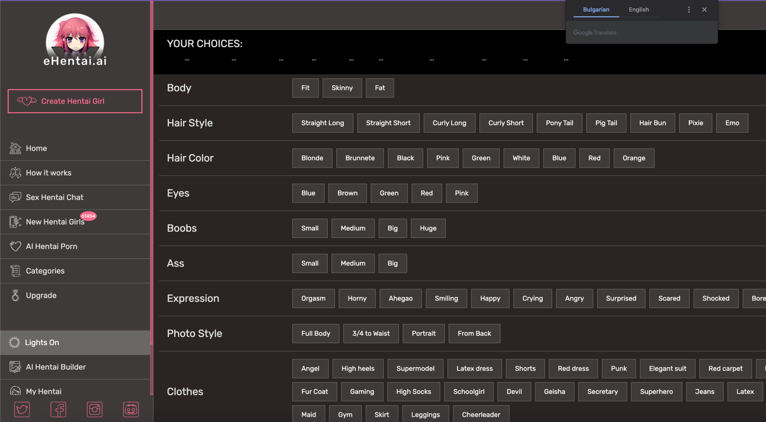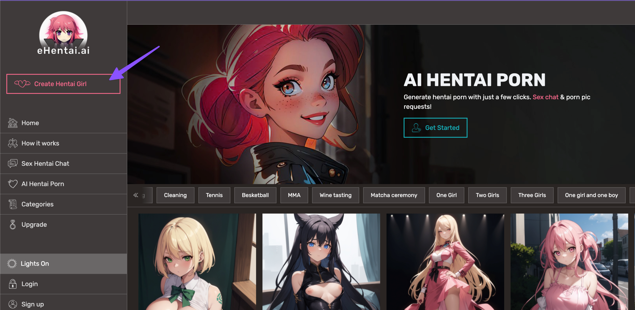 Now, a new interface will open, and click on “create hentai girl” from the left menu to create ai generated hentai images as below;