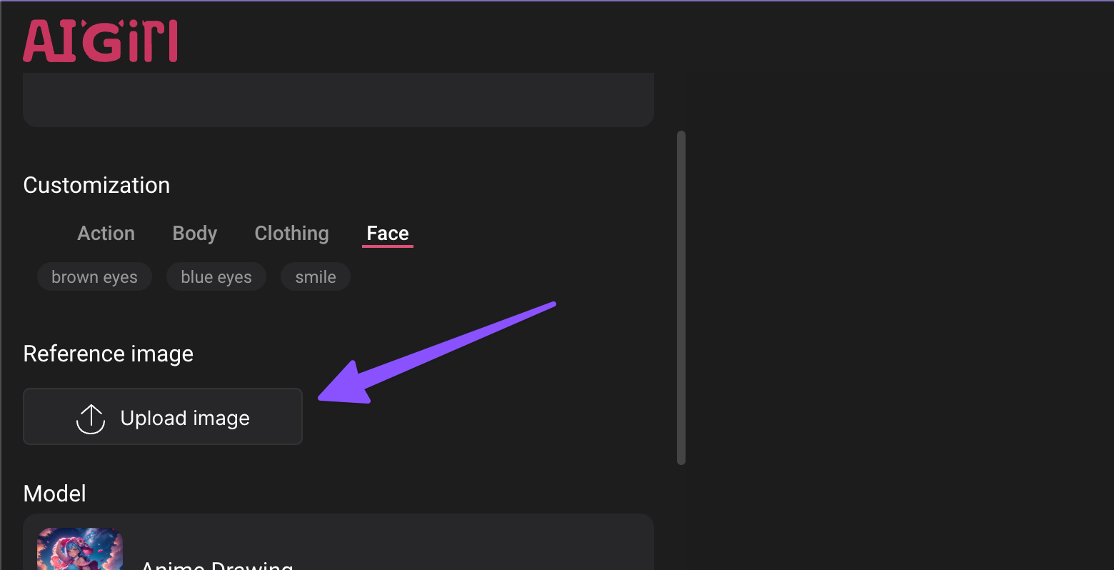 Next, You have the option to upload reference images, use this feature to turn your picture into a hentai character, or turn any female characters out there into your dream hentai AI art;