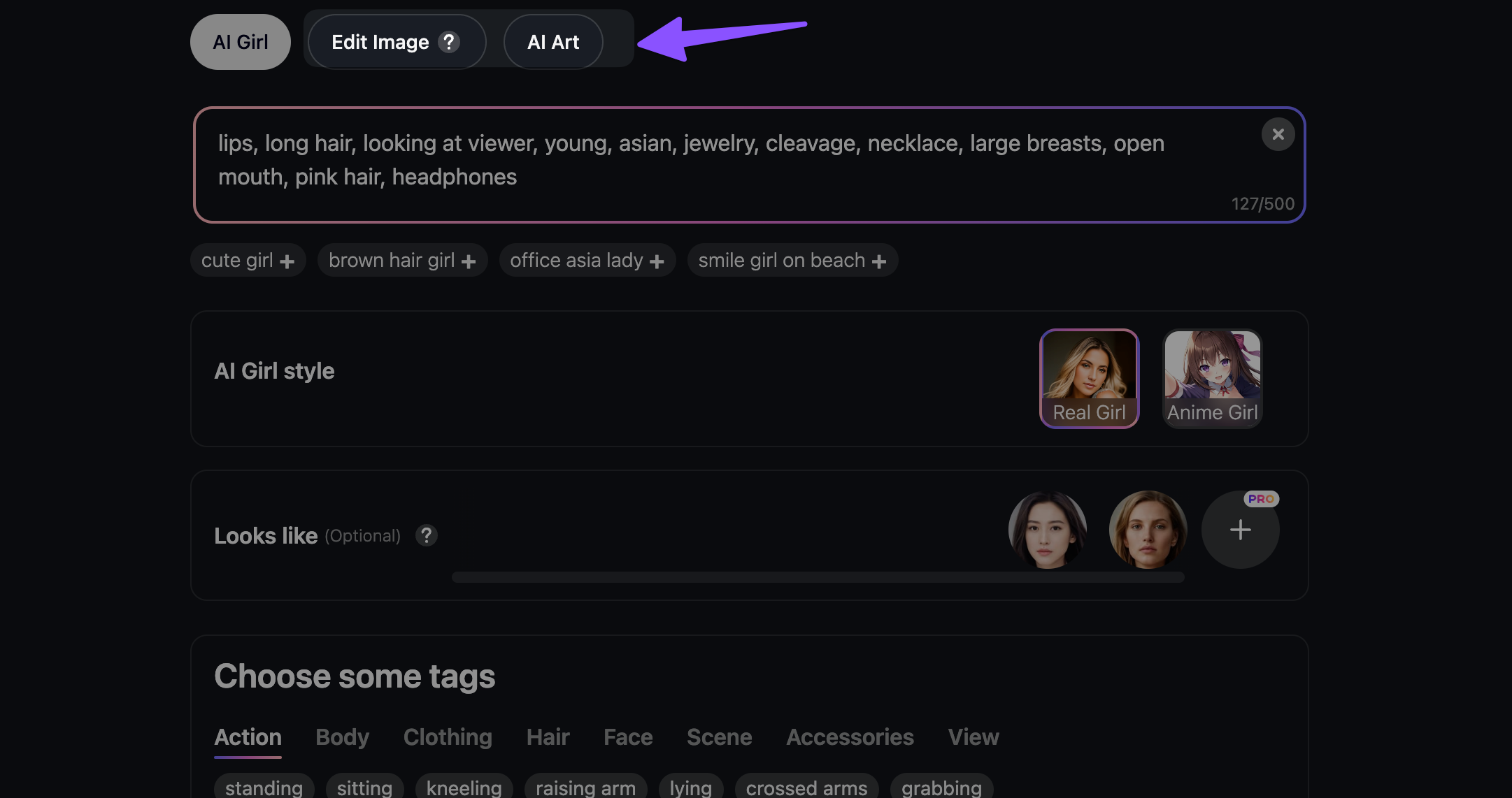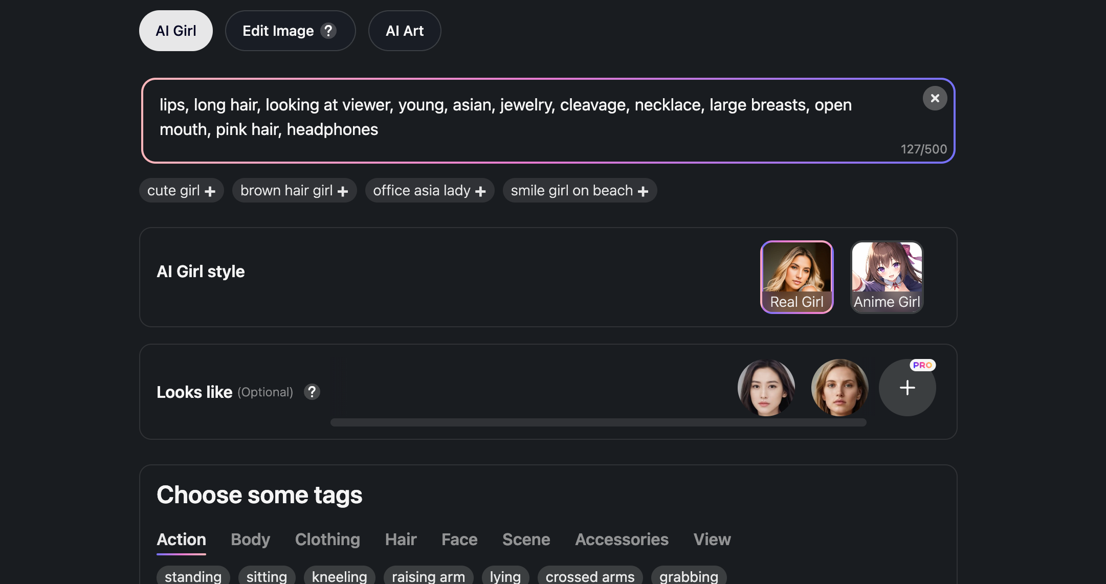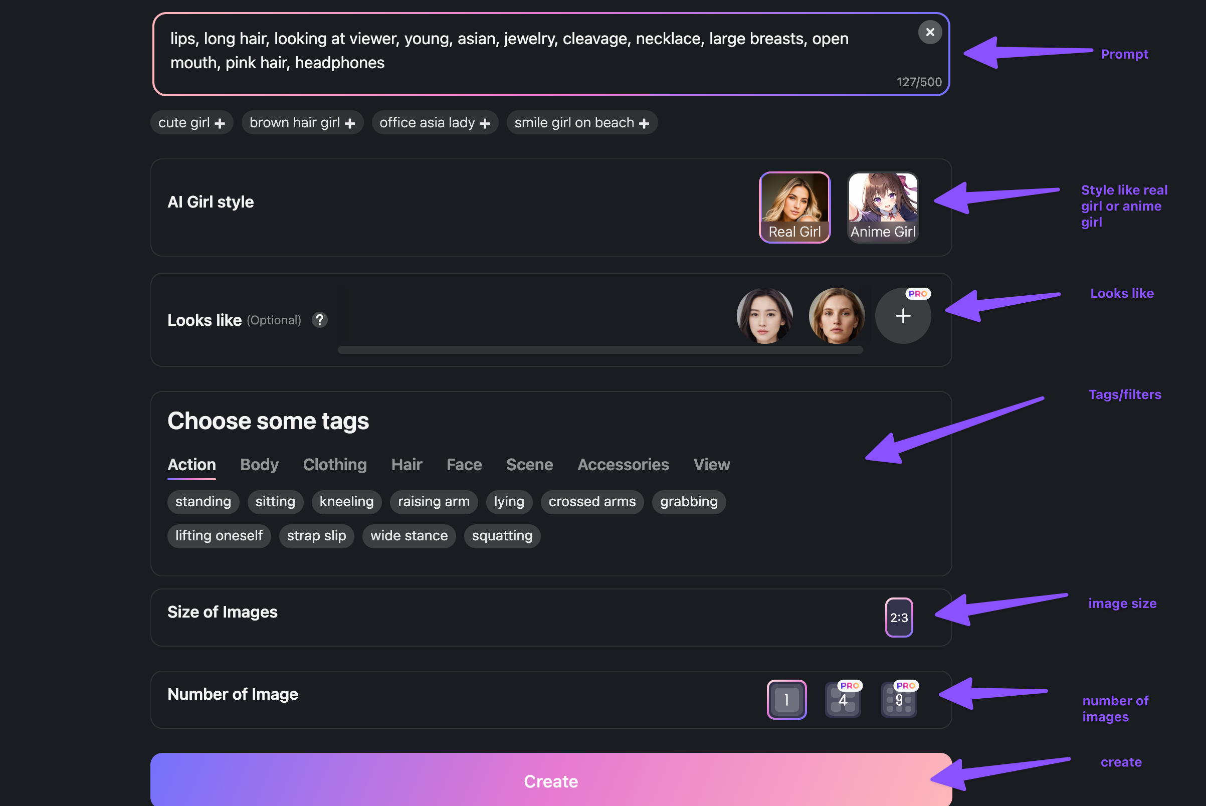 You can create your AI girlfriend using their both AI Art generator (Real Girl) as well as AI Hentai generator (Anime AI Art) using their interface which we will discuss in the following section.