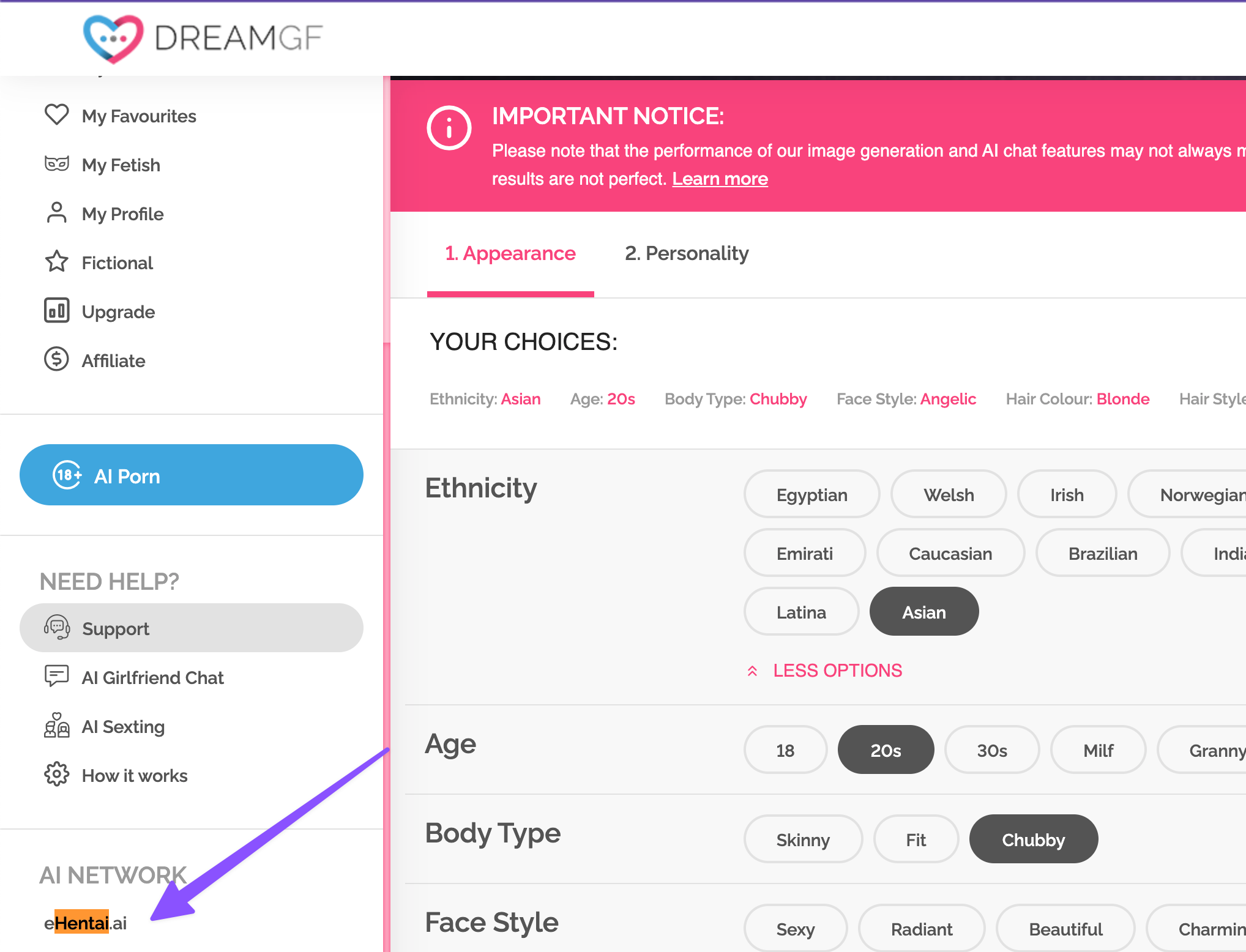 You do not need to have an account with them to generate AI hentai art, you just need to select the following options i.e. Face, Ethnicity, Outfit, etc NSFW content filter like Naked or not as you can see below;
