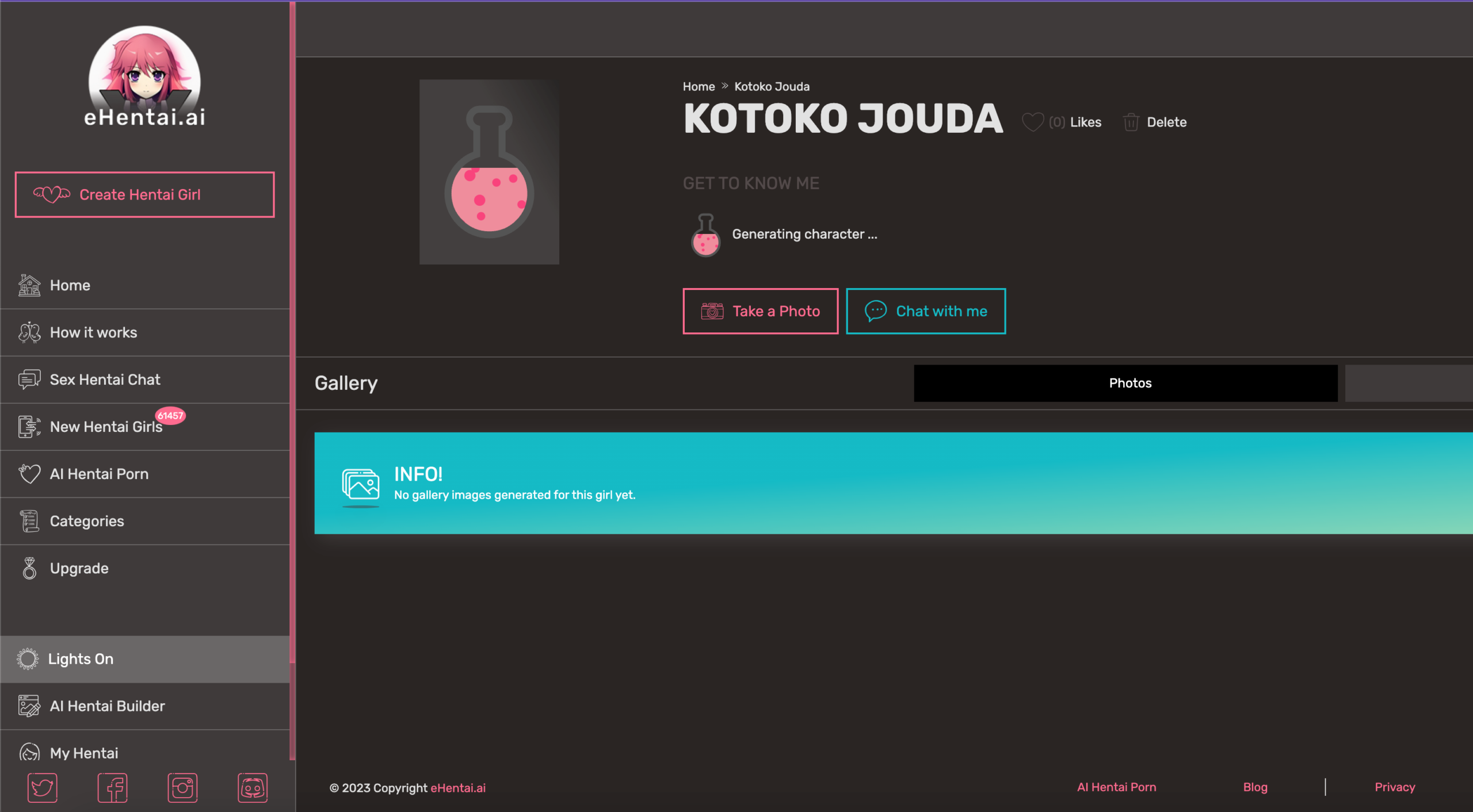 Now, when you’re ready click on “Create” to see your Hentai AI as below;