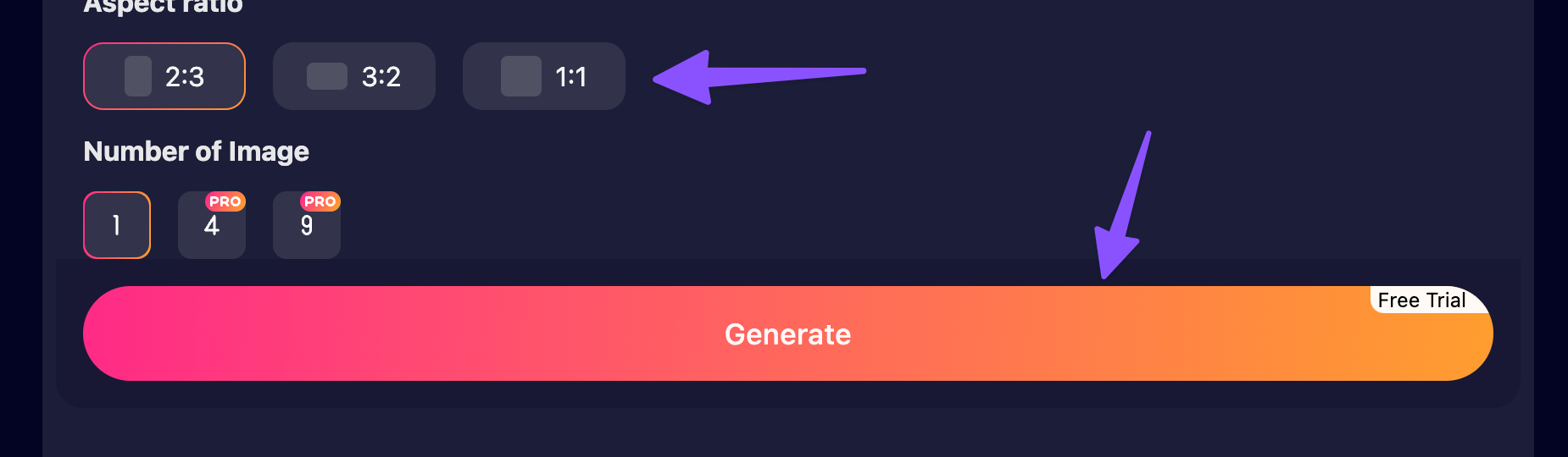Next, Choose aspect ratio and click on Generate as below;