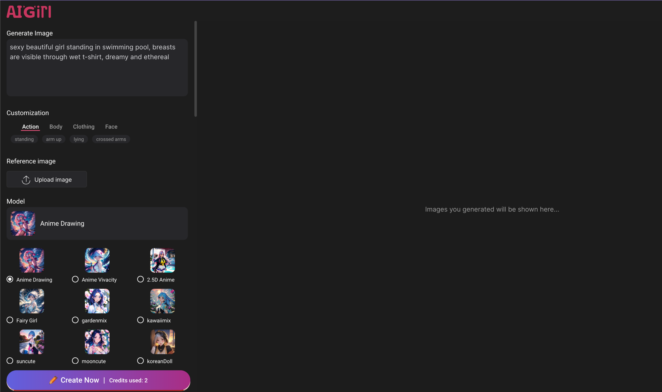 Now, click on “Create Now” and you will see your AI-Generated Hentai on the right;
