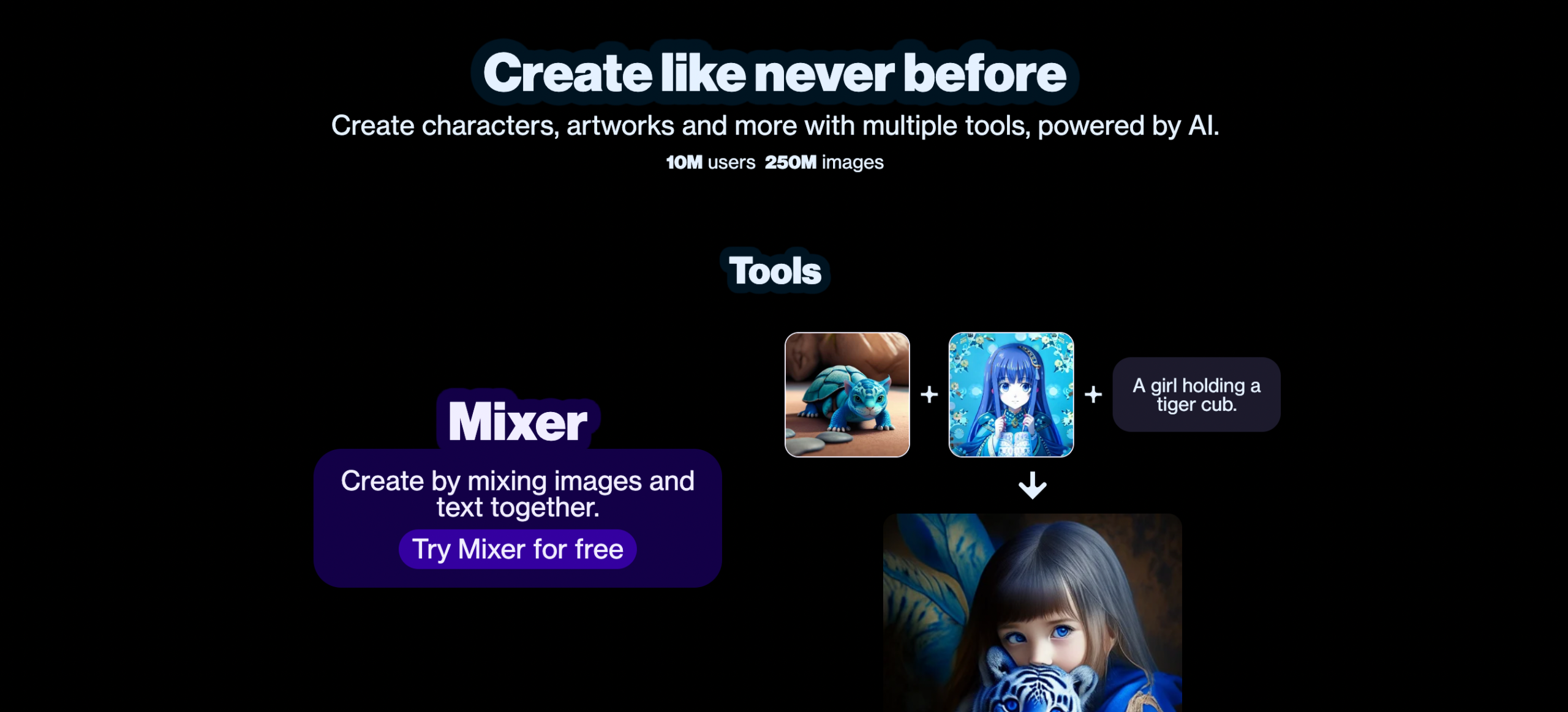 Mixer: Mixes your text prompt and your image to create new art.