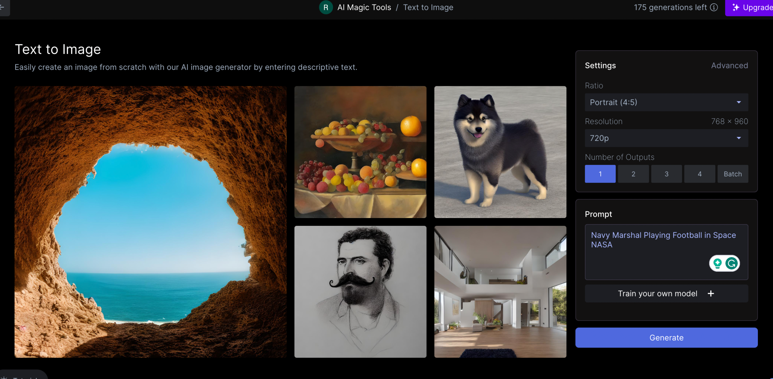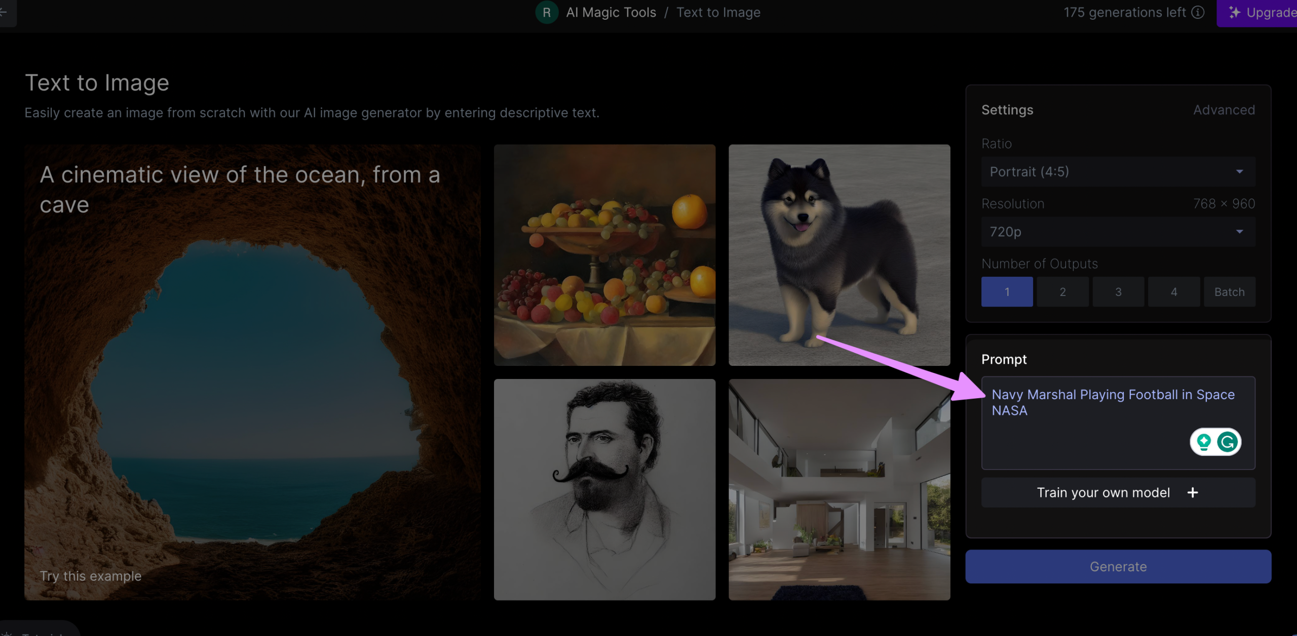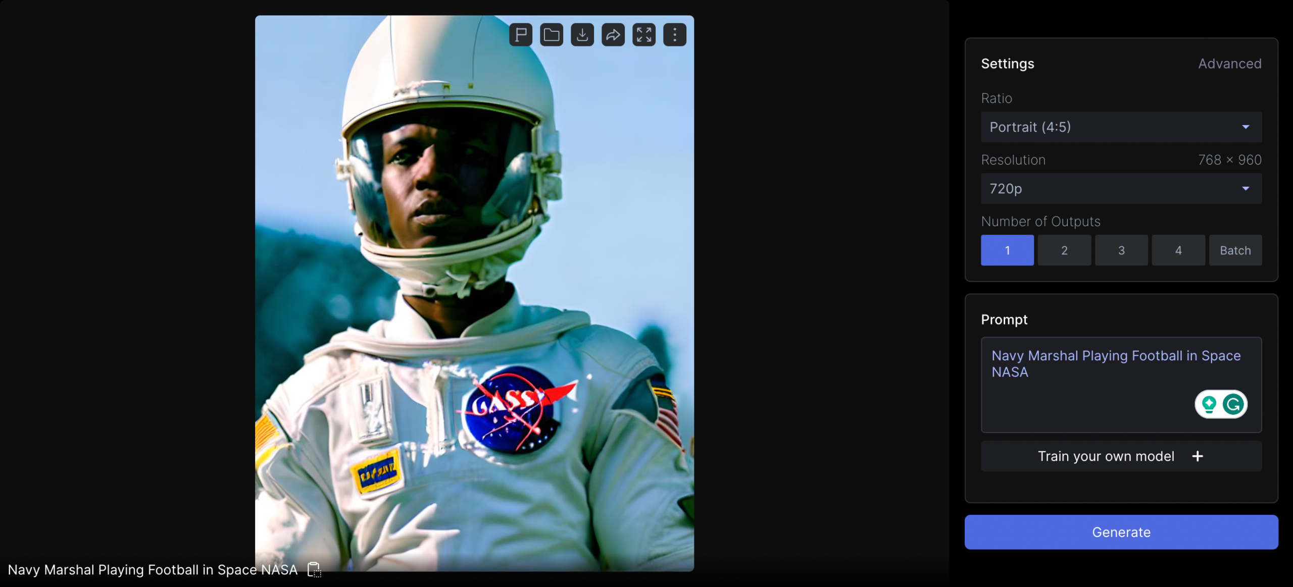 Write your prompt and click on Generate and you will see your generated image as follows;