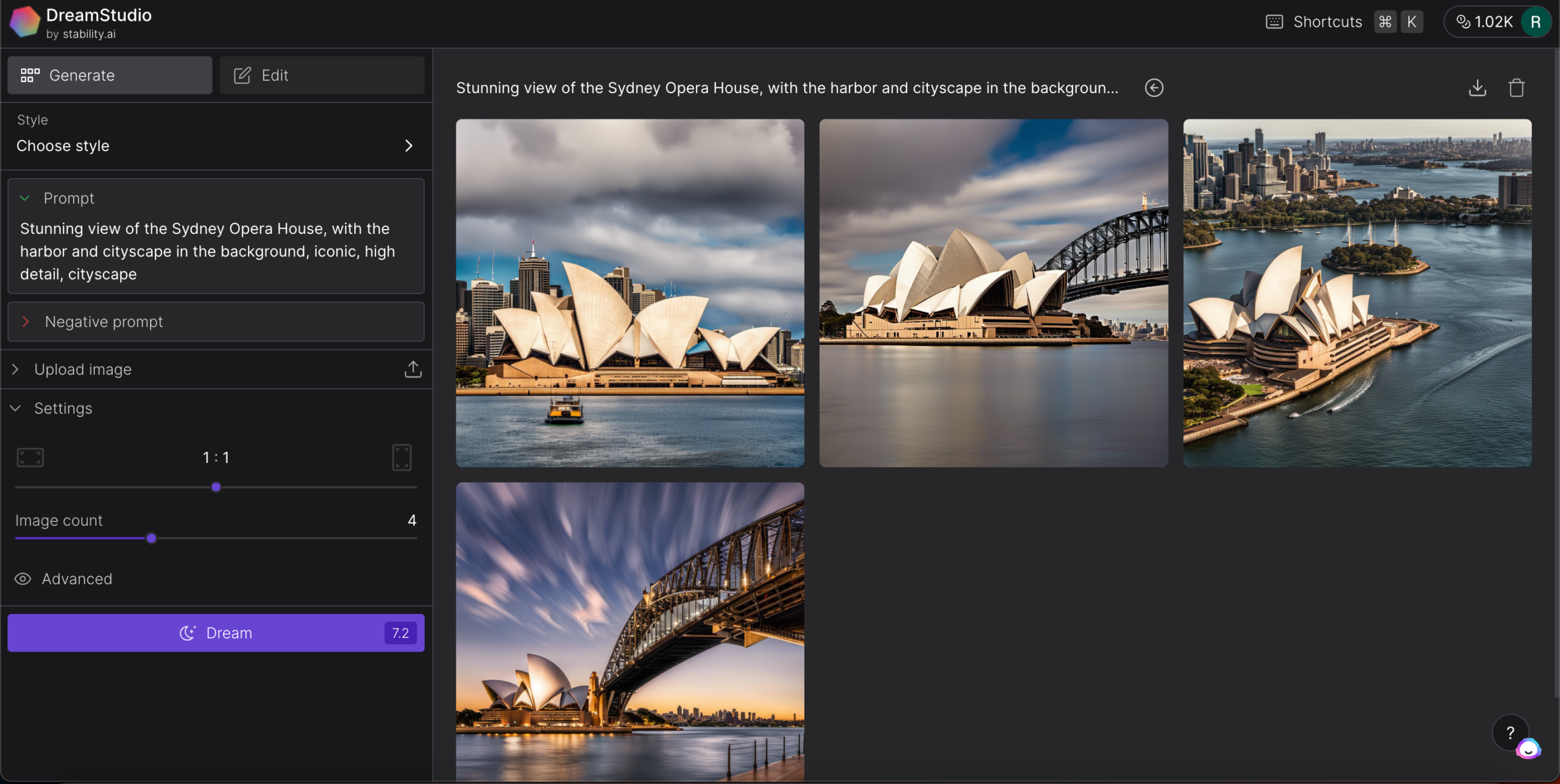 And when you’re ready, click on “Dream” and ready to see your generated image on the right.