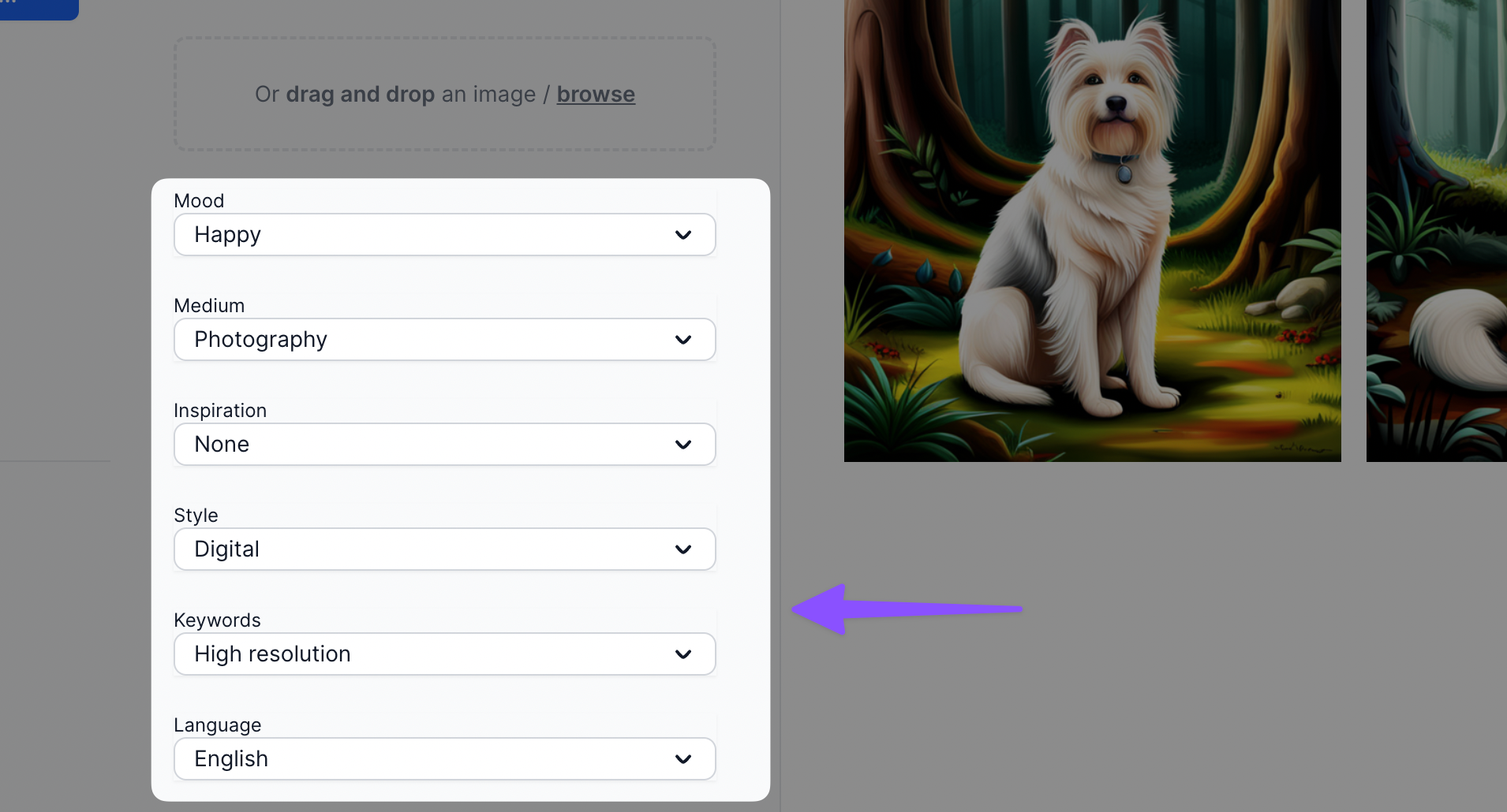 Generates high-quality images from keywords and phrases using artificial intelligence.
