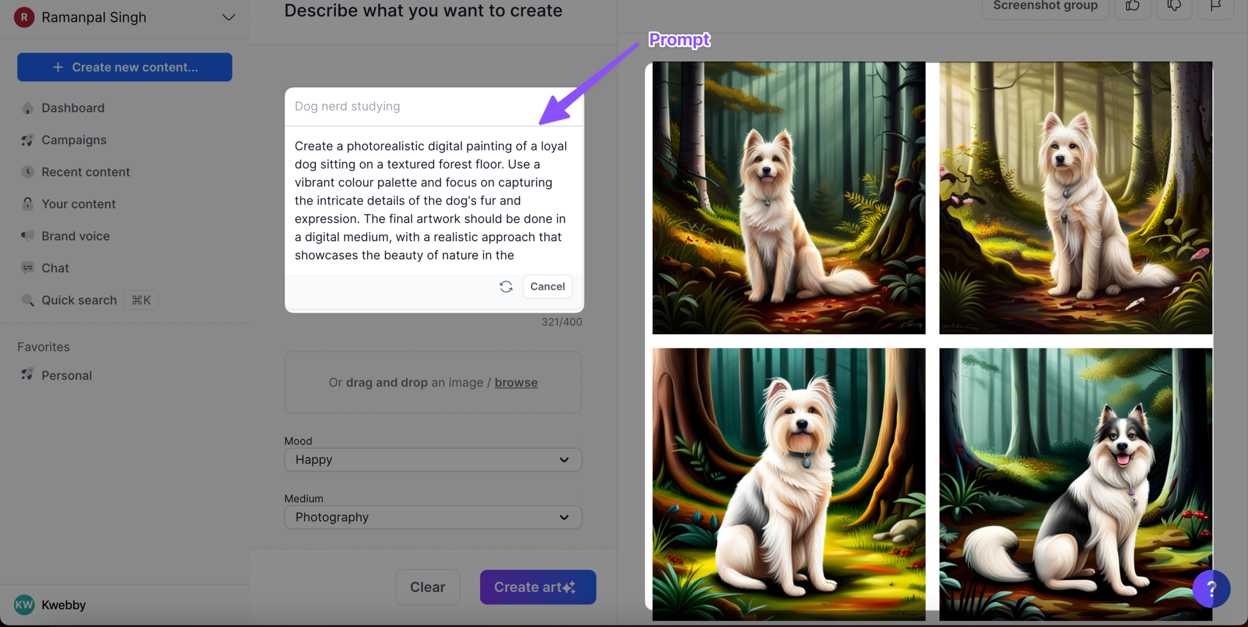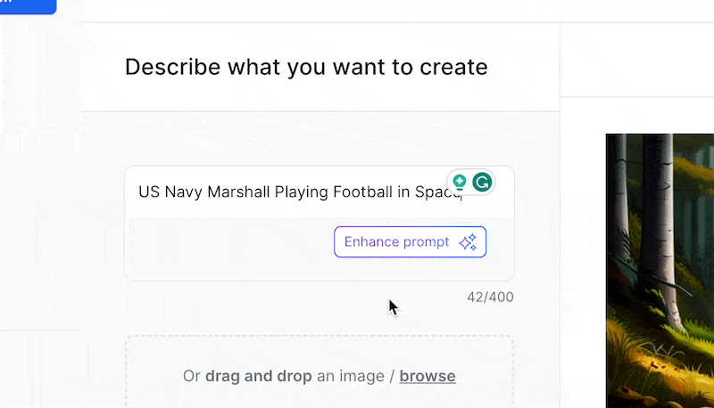 If you want Jasper to enhance the quality of the prompt, then click on the “enhance prompt” button as follows;