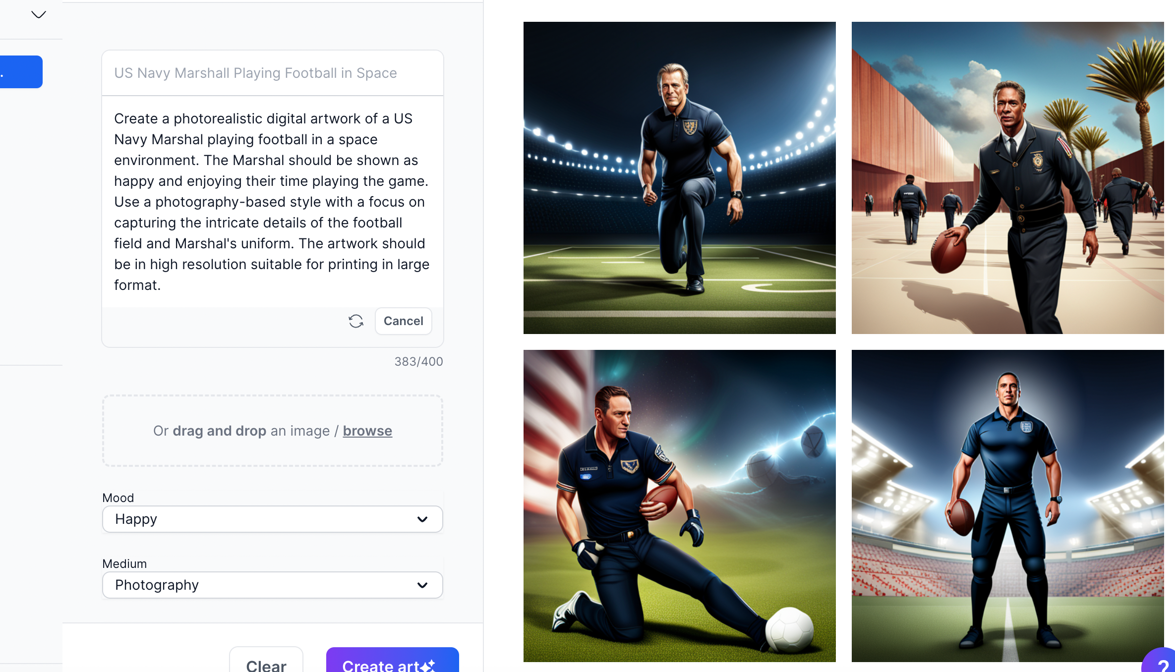 And when you’re ready, click on “Create art” button and you can see your output as follows;