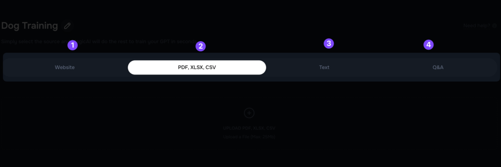 - Multiple Methods to Train: You Can train using multiple methods i.e. Your Text, PDF, CSV, XML, Questions and Answers;