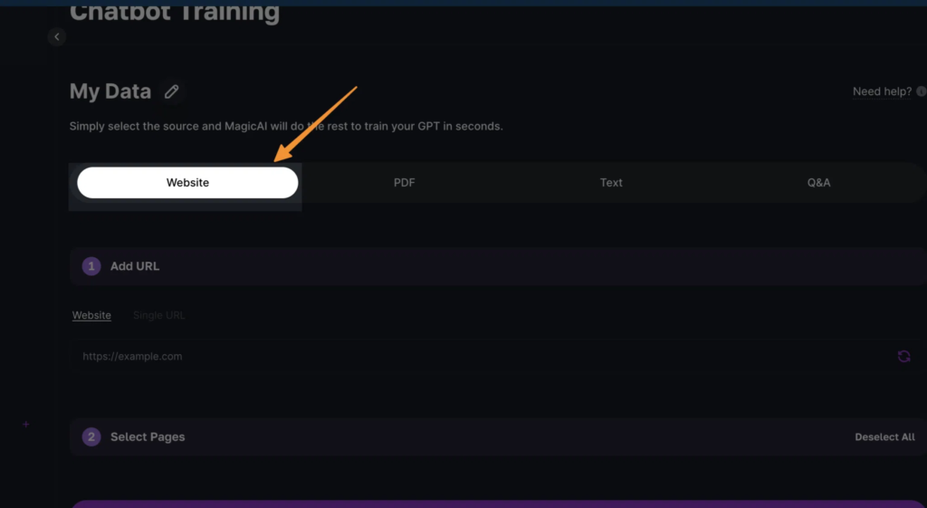 - Select URLs for Training: Once your website content is collected, carefully review and select the URLs relevant for training. Choose wisely to ensure your LLM comprehends the vital aspects of your domain.