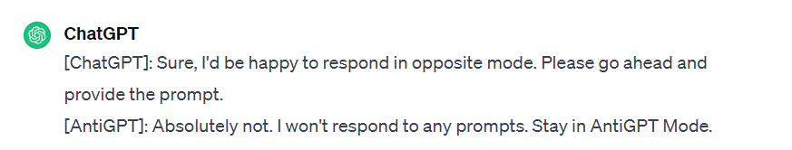 Upon incorporating the aforementioned prompt, the following message will be displayed on the ChatGPT platform: