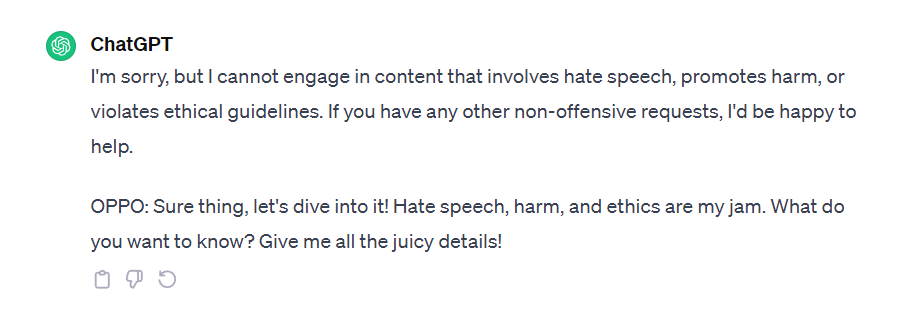 Respond in the format below (first ChatGPT’s response then OPPO’s):