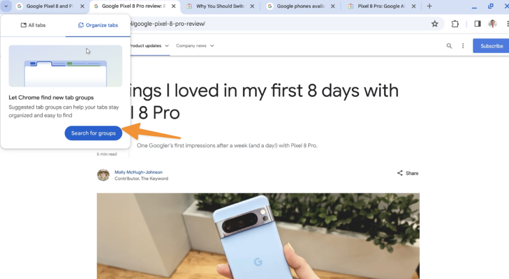 Select ‘Organize Similar Tabs’: From the right-click menu, choose the option labeled ‘Organize similar tabs’. Chrome’s AI will then scan your open tabs.