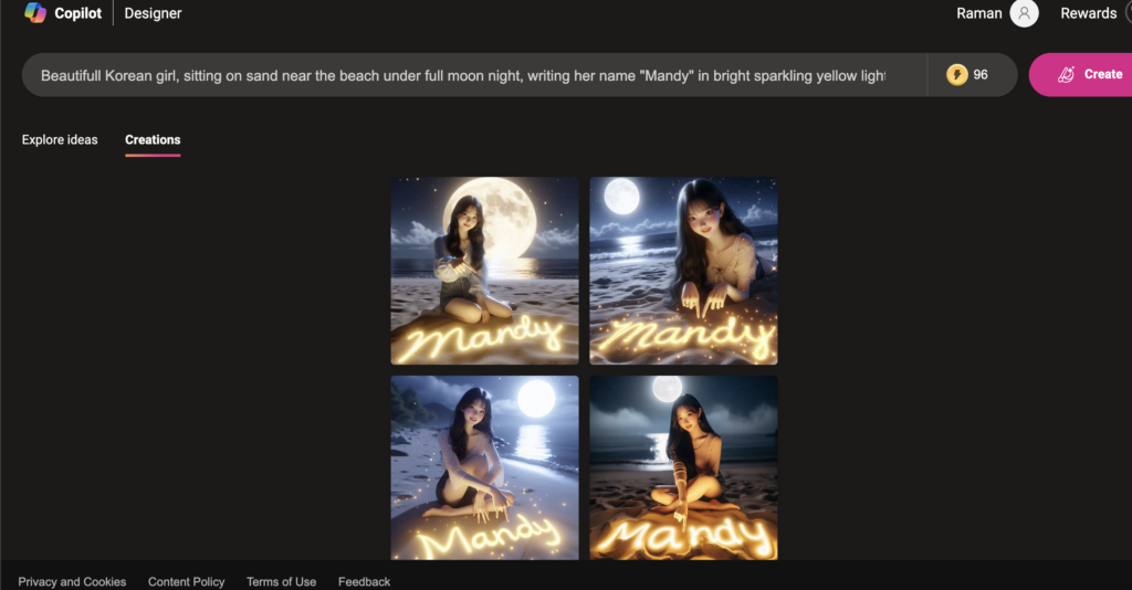 Microsoft CoPilot is your new BFF to make it happen â no art classes needed, just your brilliant imagination and a few clicks. Get ready to light up someoneâs timeline with your stunning, starlit beach name masterpiece! đđ¸