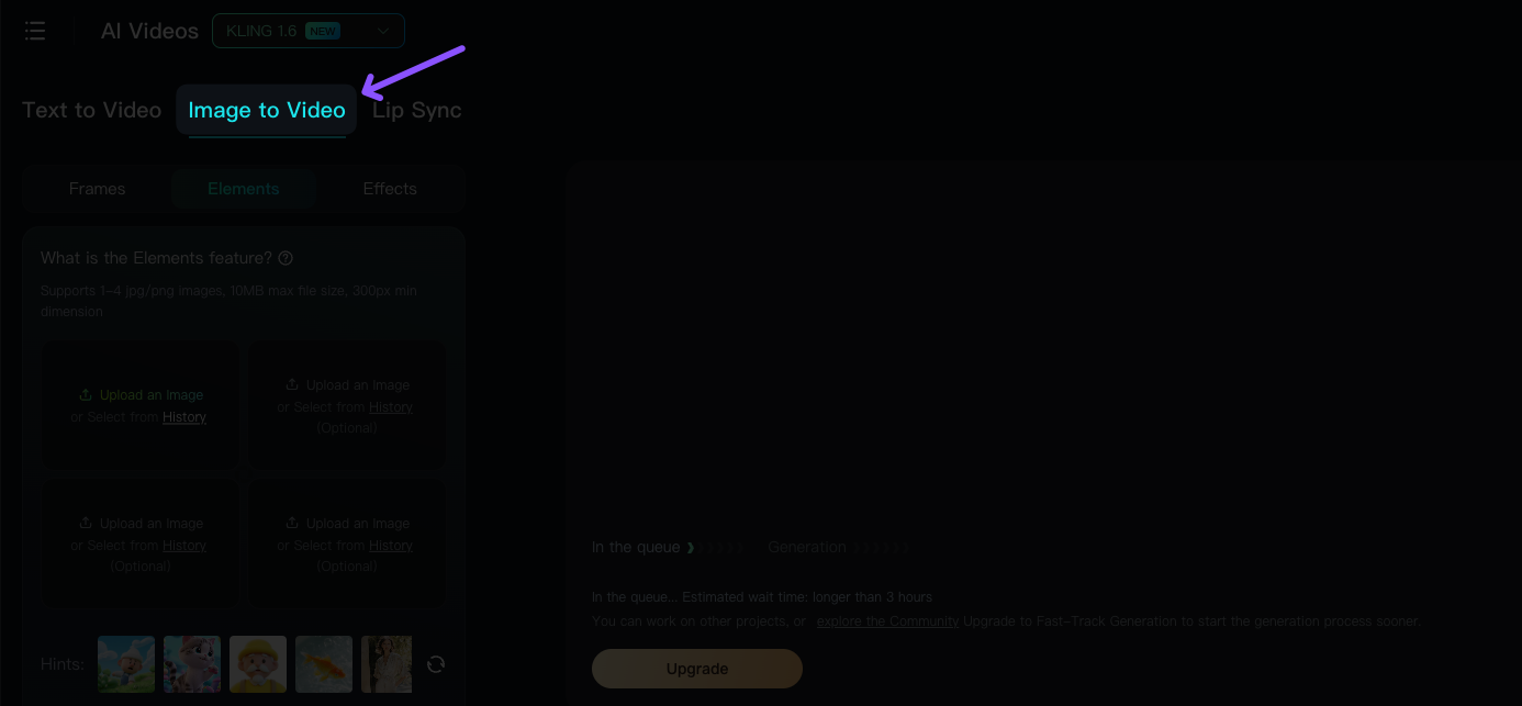 From the same dashboard, select the Image to Video option from the menu.