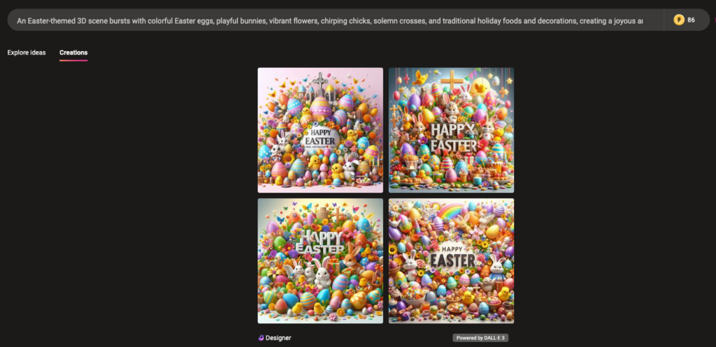 Choose Your Favorite Variation: Bing will offer up to four variations of your image. Take a moment to pick the one that best captures your Easter vision. If none of them quite hit the mark, you have the option to regenerate for more choices.