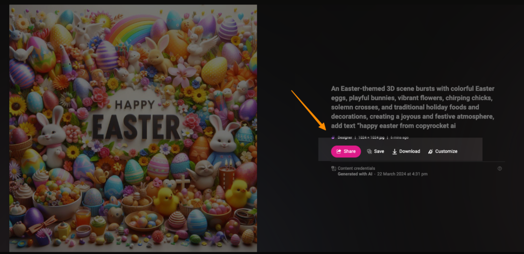 Download Your Image: Once you’ve selected the perfect Easter AI image, simply download it. And voila, you have a beautiful, personalized Easter image ready to share with friends, family, or on social media.