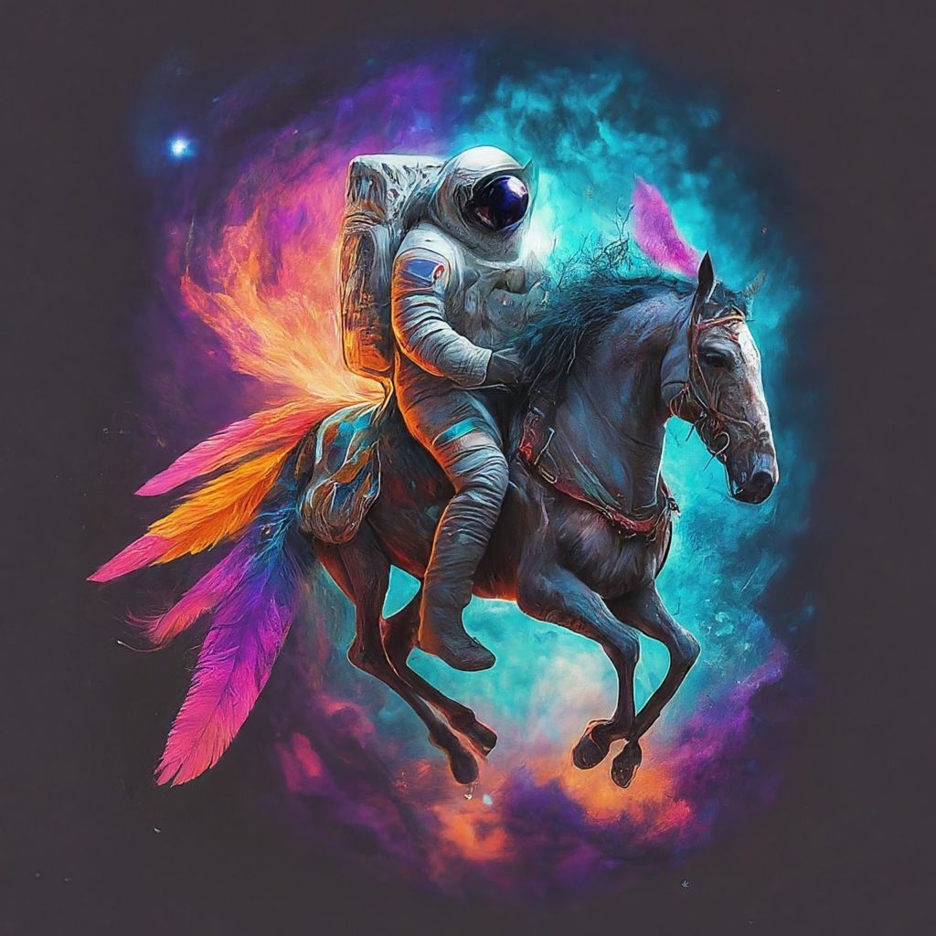 - Position the astronaut on the horse, capturing a dynamic and adventurous pose as they journey through the cosmos.