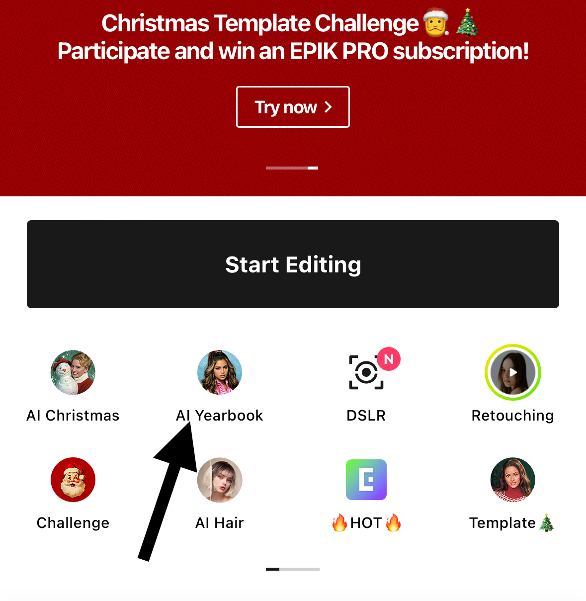 Open the app and choose Yearbook AI.