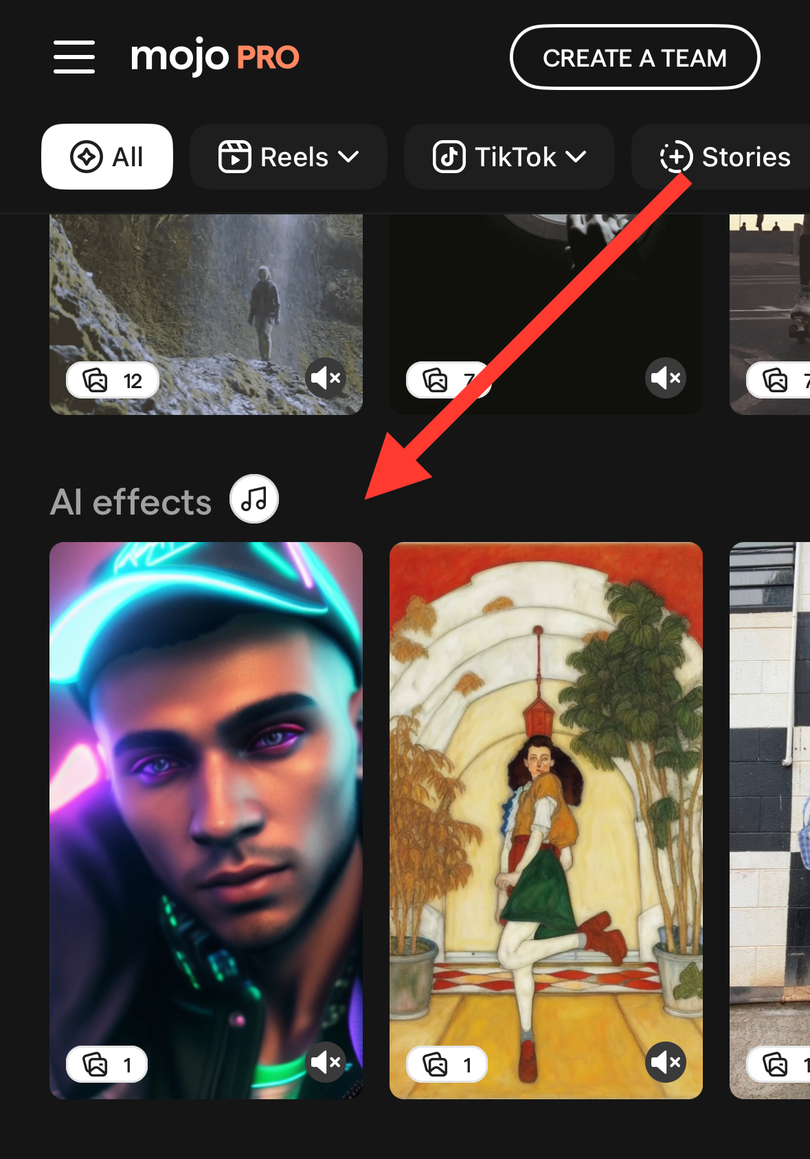 Next, scroll to the right to see all the already AI generated images effects and choose what fits you the best;