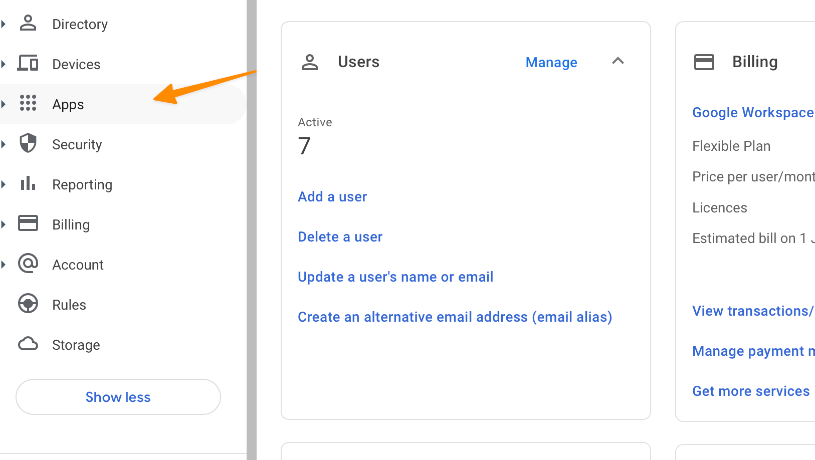 Once in the Admin Console, navigate to the section labeled ‘Apps’.