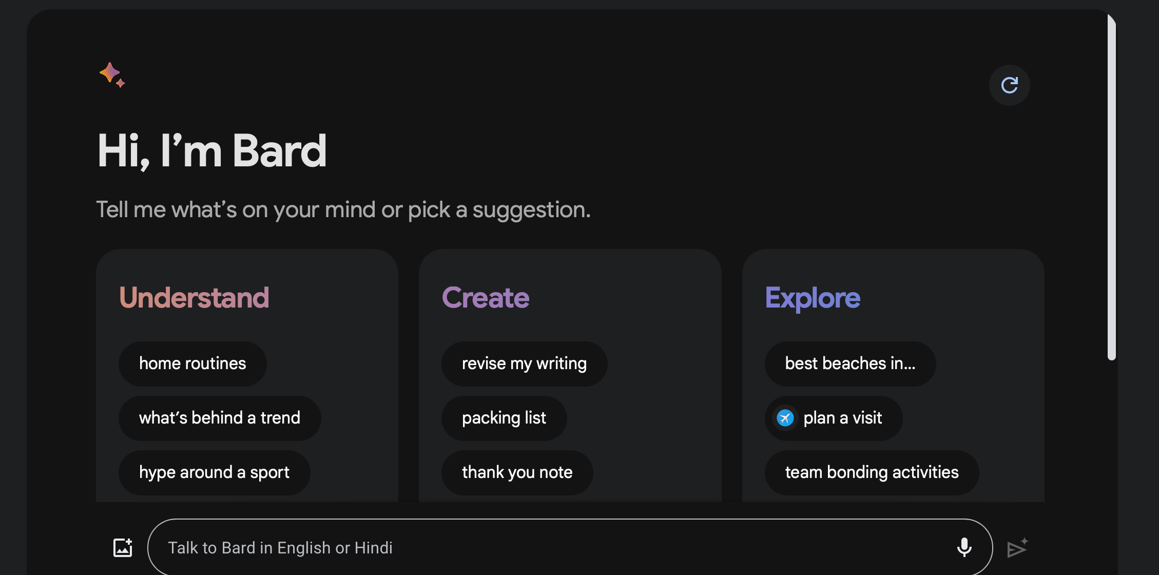 Google Bard is a ChatGPT like AI Chat application which is currectly available as early access application to selected personal Google account and Google Workspace users. It harnesses the power of generative AI to serve as a creative and helpful collaborator, ensuring that you never run out of fresh, creative content for your projects.