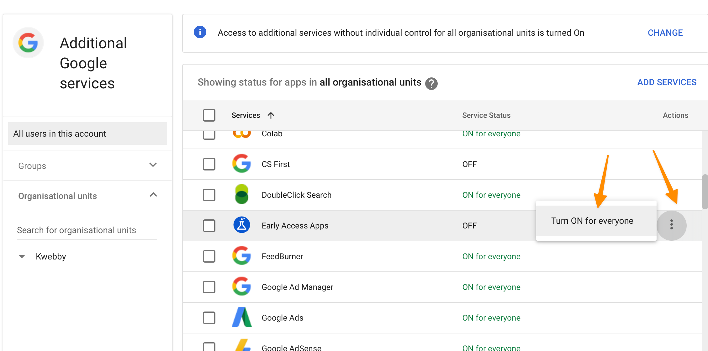 Click on Three dots icon on right of Early Access Apps option and click on the “Turn ON for Everyone” button.