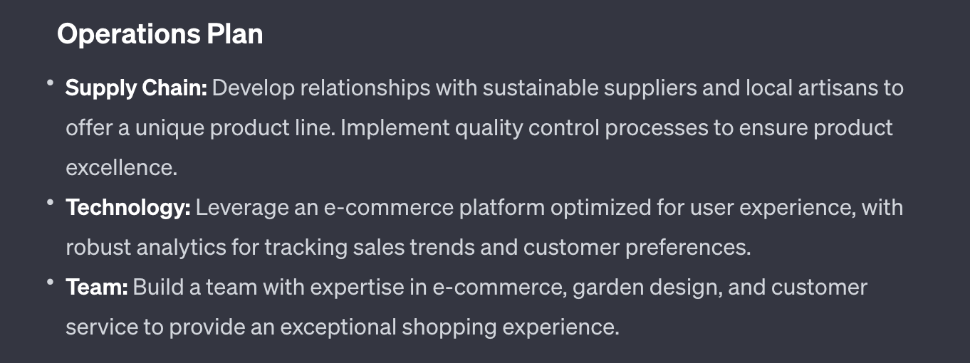 By leveraging ChatGPT, you can present a clear and detailed vision of how your day-to-day operations will run, ensuring a streamlined and successful business journey.