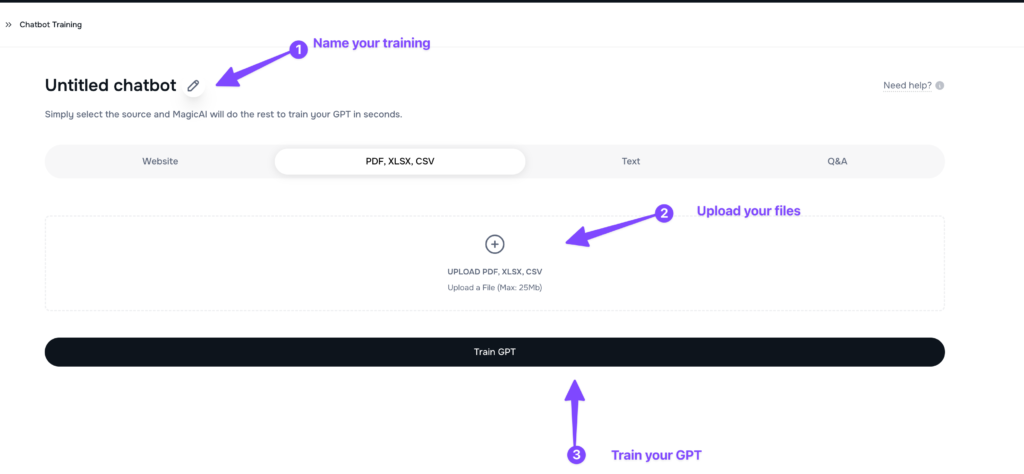 If you’re ready to enhance your cost analysis capabilities apart from using ChatGPT, You can use our Chatbot training app, follow these simple steps to train your AI chatbot for efficient interactions: