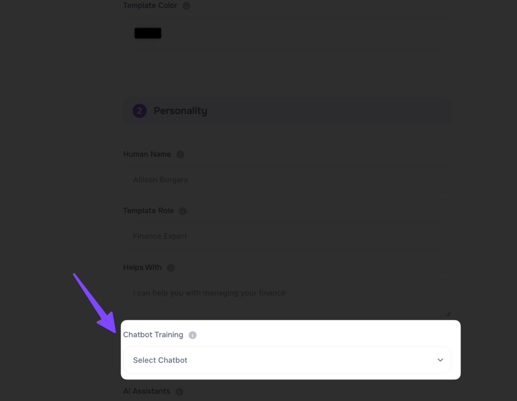 - Next, Type all the required fields and select your chatbot training under dropdown section;