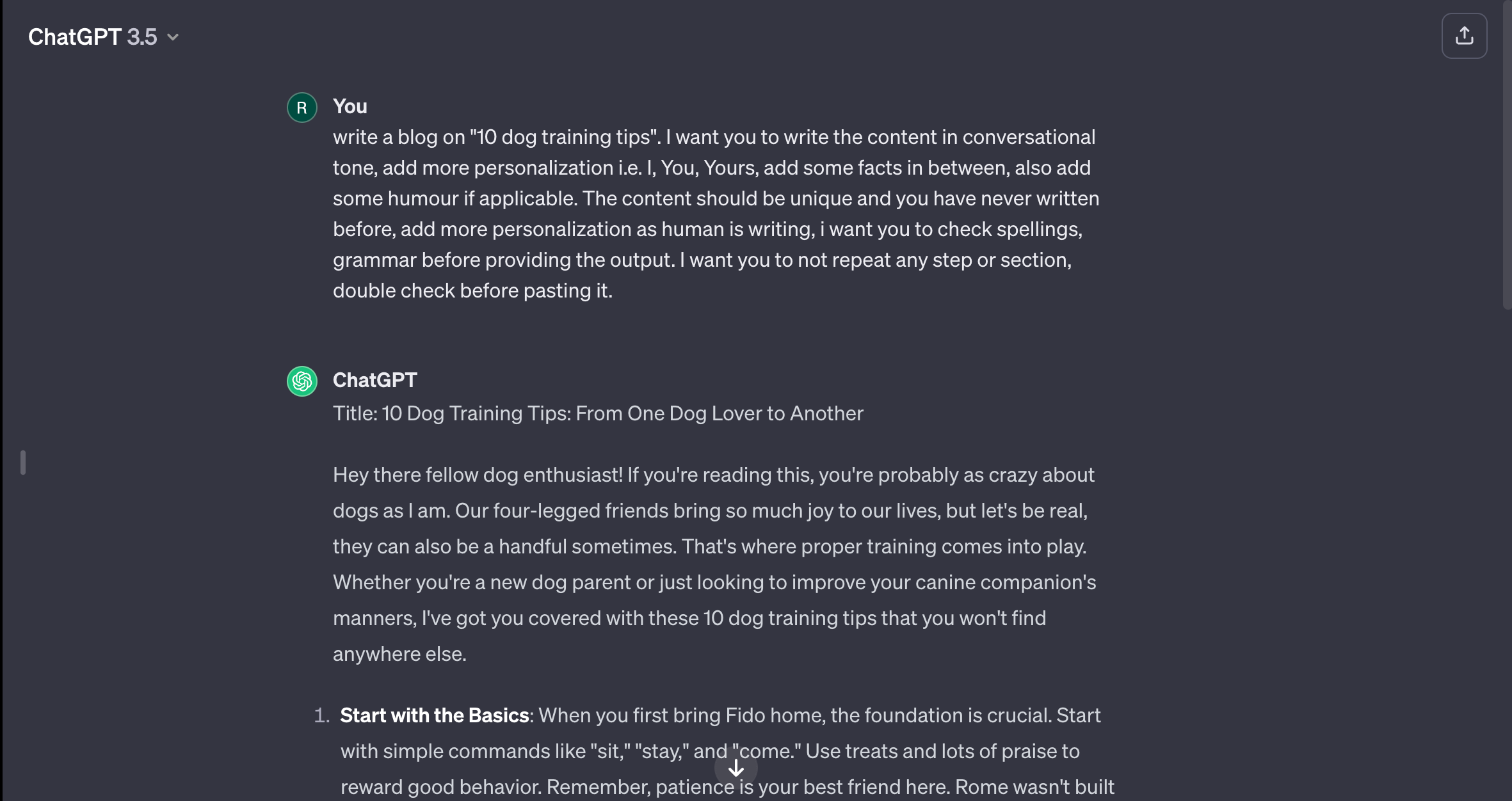 First, you need to command ChatGPT what you want from it, for example, social media post, Blog post or web copy, afterwards add the following command.