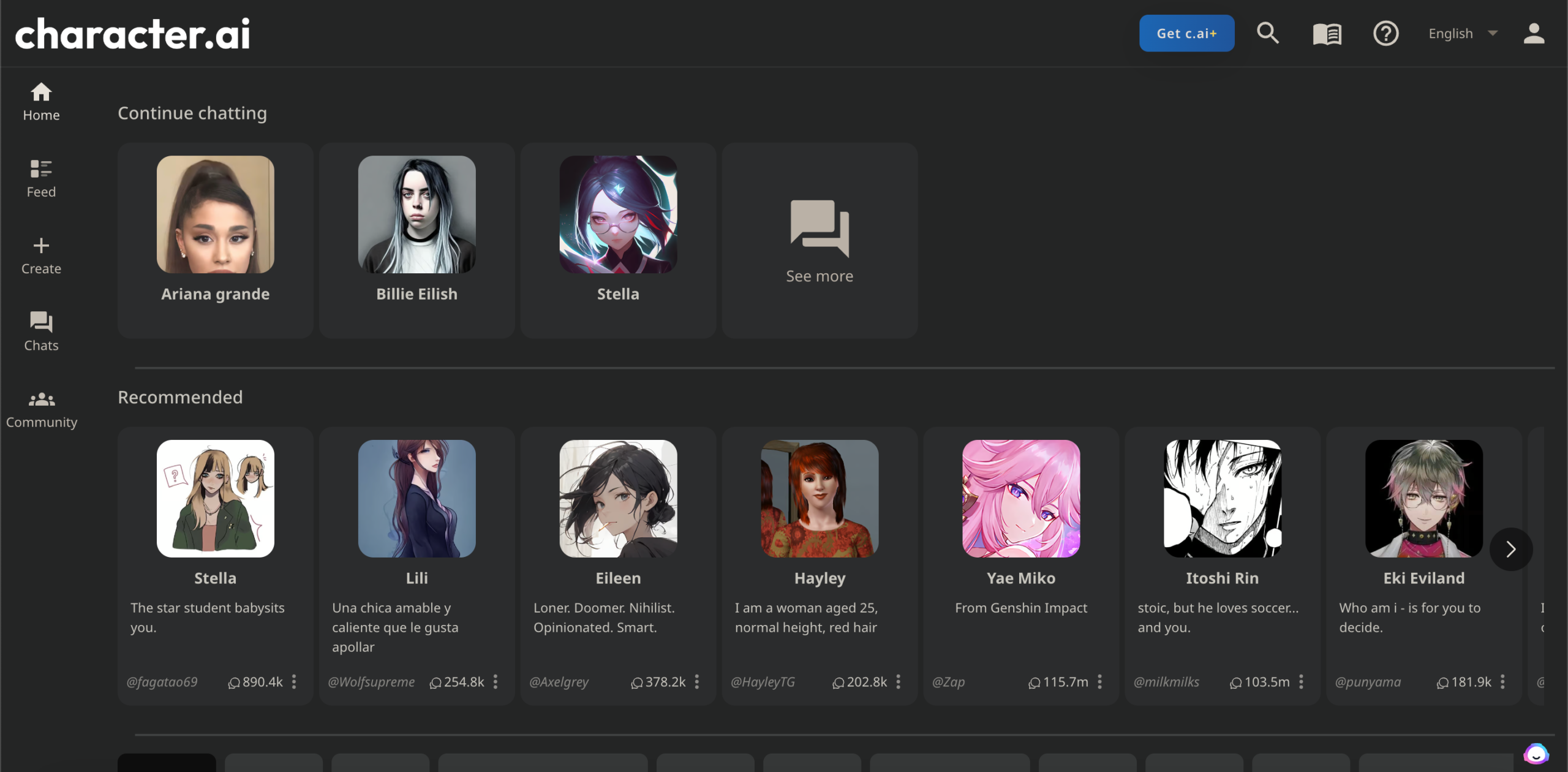 Apart from creating your own AI companions, you can also choose to roleplay with existing characters. These characters are made available by the platform and you can start chatting with these AI chatbots right away.
