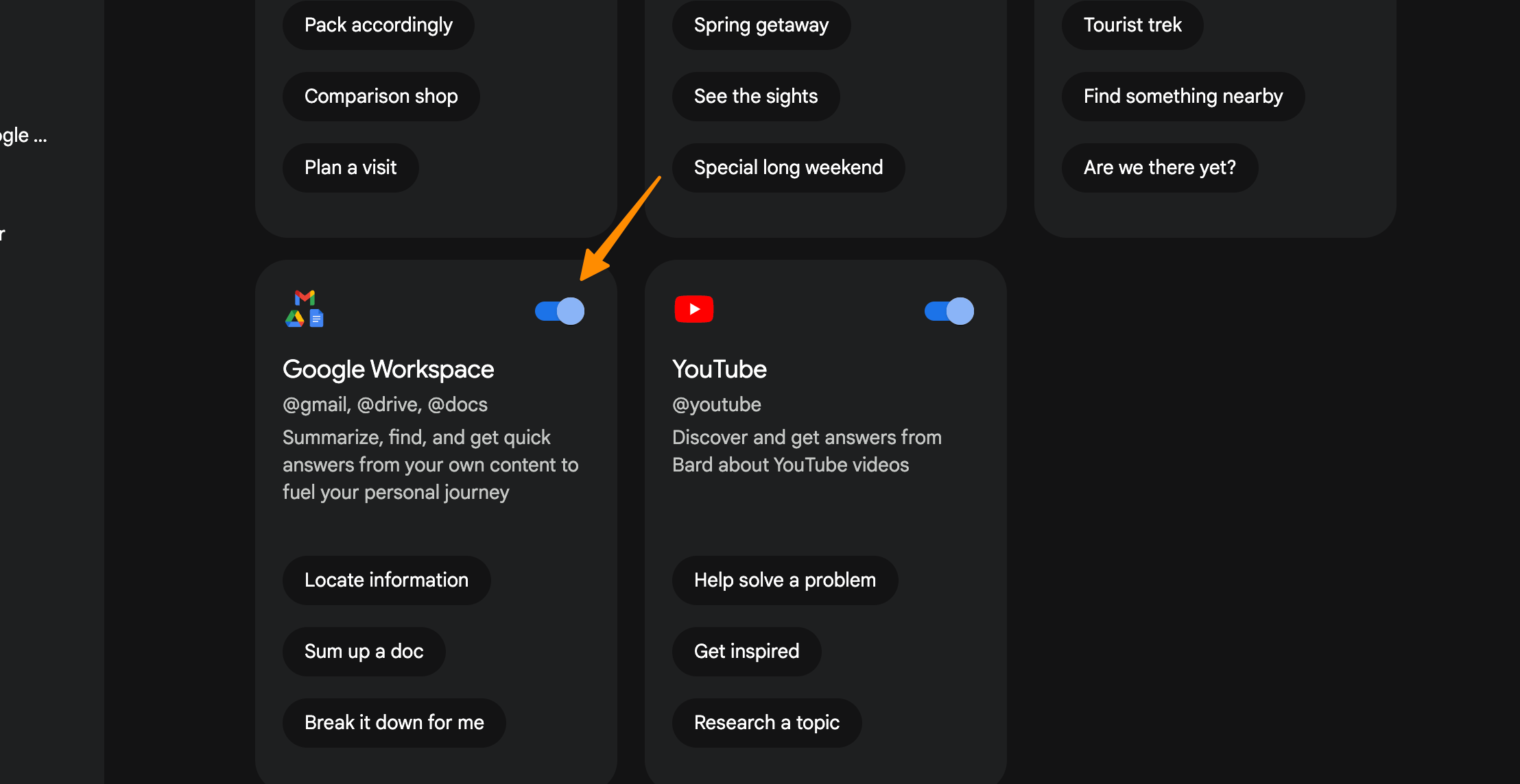 Select Connect toggle button to connect bard with Google docs.
