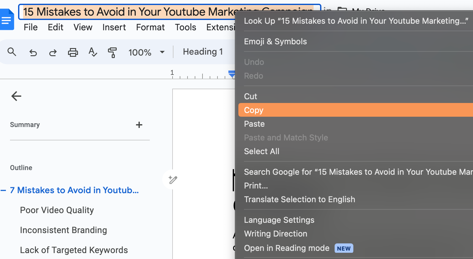 Alternatively, You can copy your Google Docs title clicking on the title;