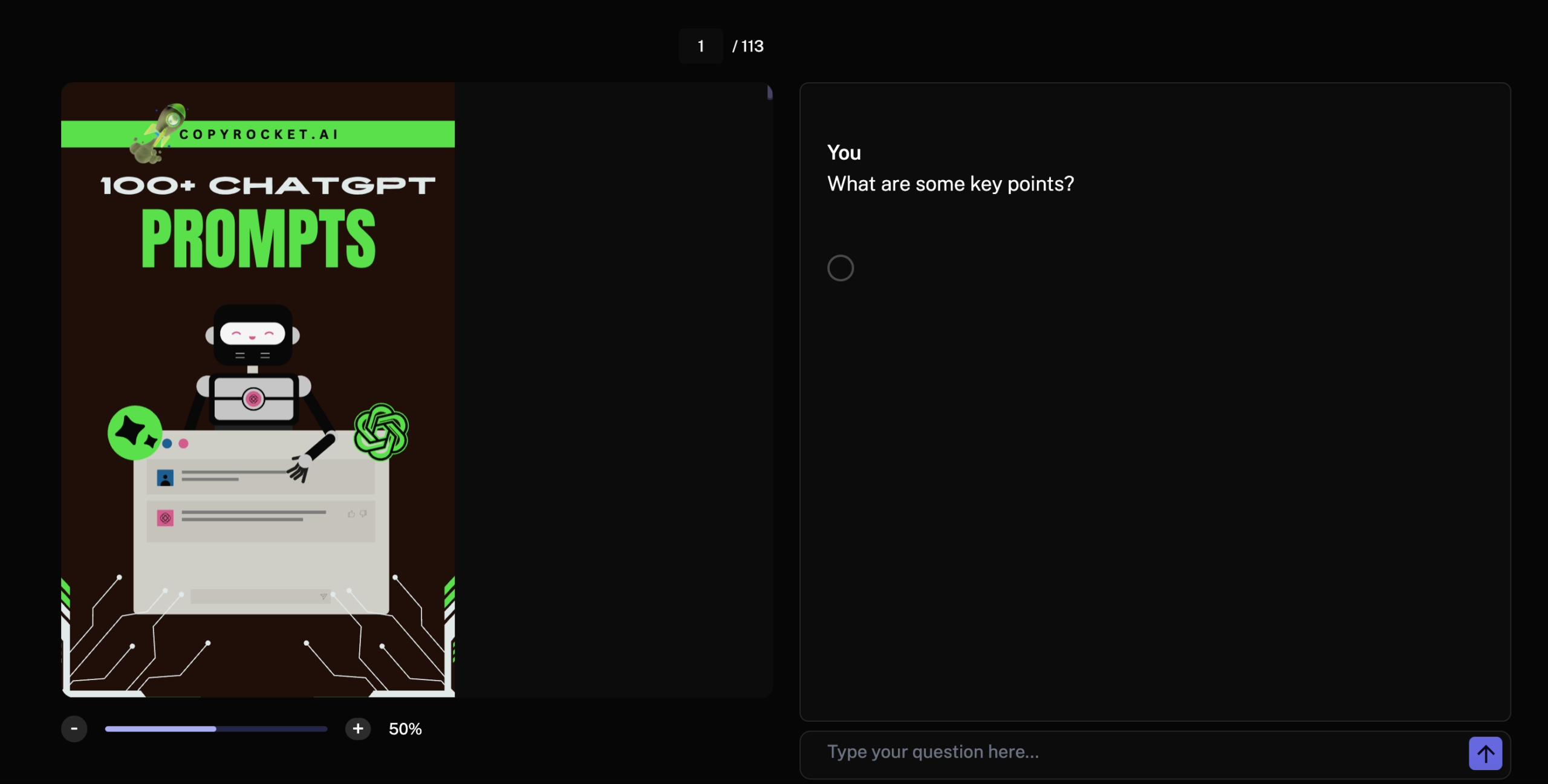 Imagine you have a lengthy report in PDF format. Instead of manually skimming through the content, you can ask Conch AI specific questions or provide prompts related to the information you’re looking for. For example, you can ask, “What were the sales figures for Q3?” or “Can you highlight the key takeaways from the second chapter?” Conch AI will swiftly process your query and reply with the most relevant sections or insights from your document.