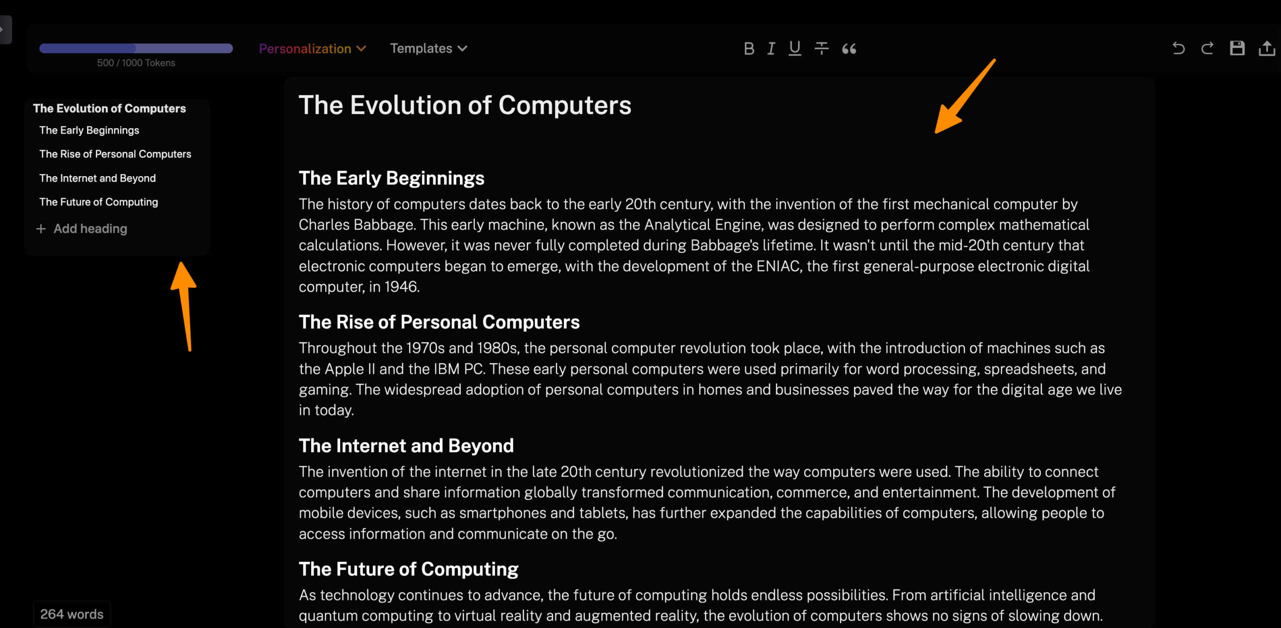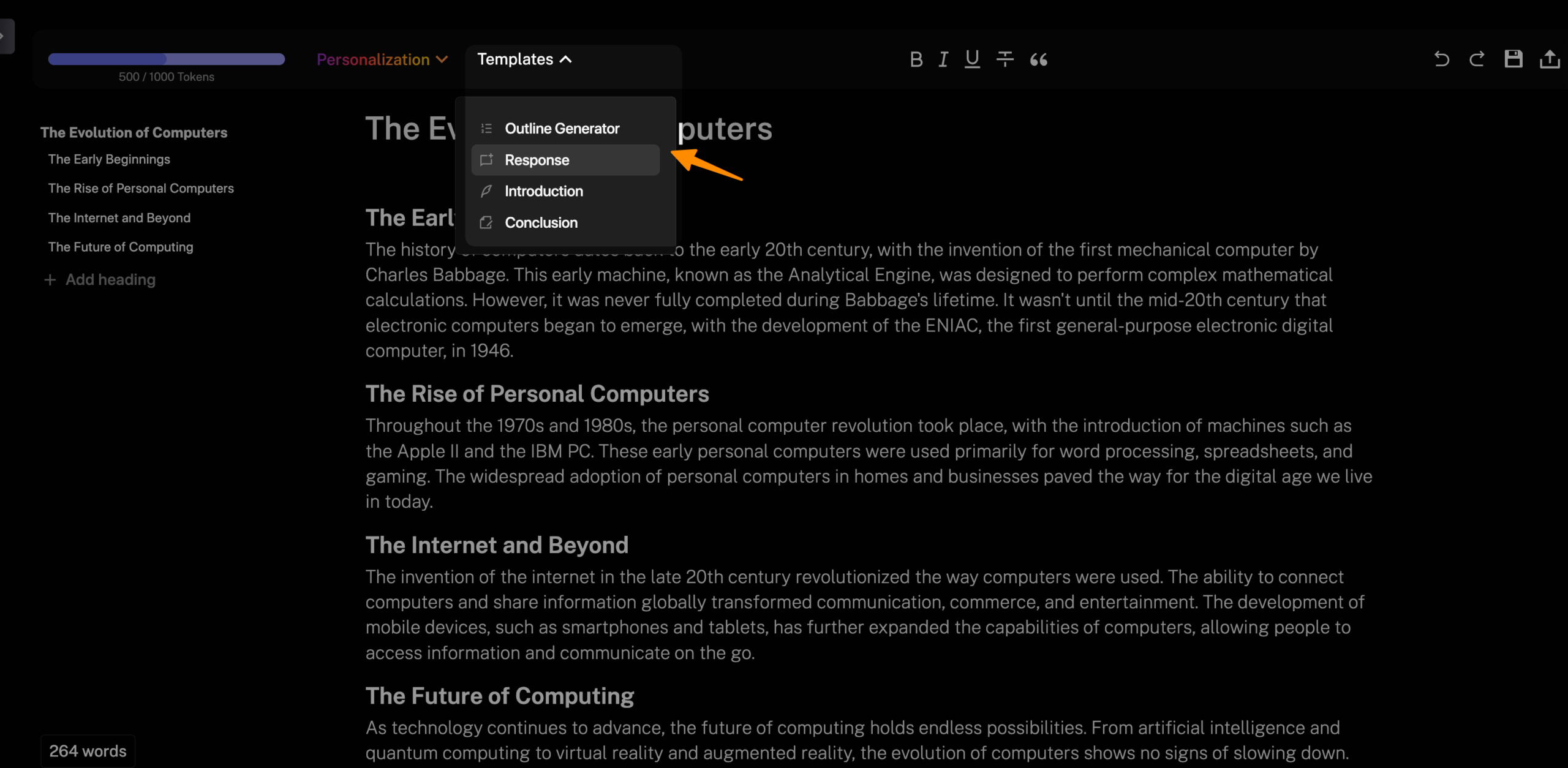 Now, Enter your prompt, for example, “Write an essay on the history of computer”, for a more specific output, do include an outline feature and in the prompt, be as descriptive as you can be like adding your desired tone etc;